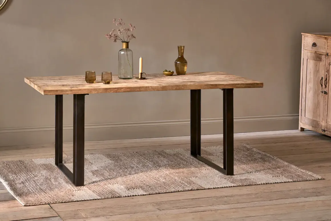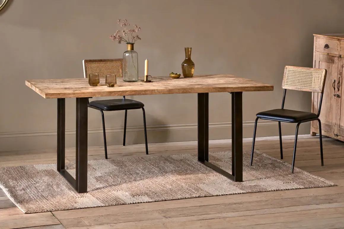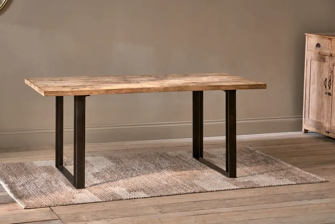 Good, honest design and beautiful natural materials combine in our collection of Fia dining tables and benches. Crafted from sustainable mango wood the natural characteristics shine through, supported by a strong, angular iron base.