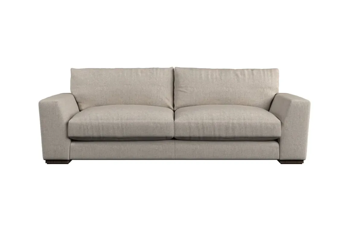The laid-back sculptural shape of the Guddu large sofa brings effortless style to an interior. The generous arms and deep seat cushions make this collection the perfect choice for families or those that like a bit of extra space to stretch out. Details include separate back cushions, exceptional quality fabrics and solid wood block feet. Each piece is handcrafted by experts using traditional techniques for a quality finish that celebrates the best of British craftmanship.