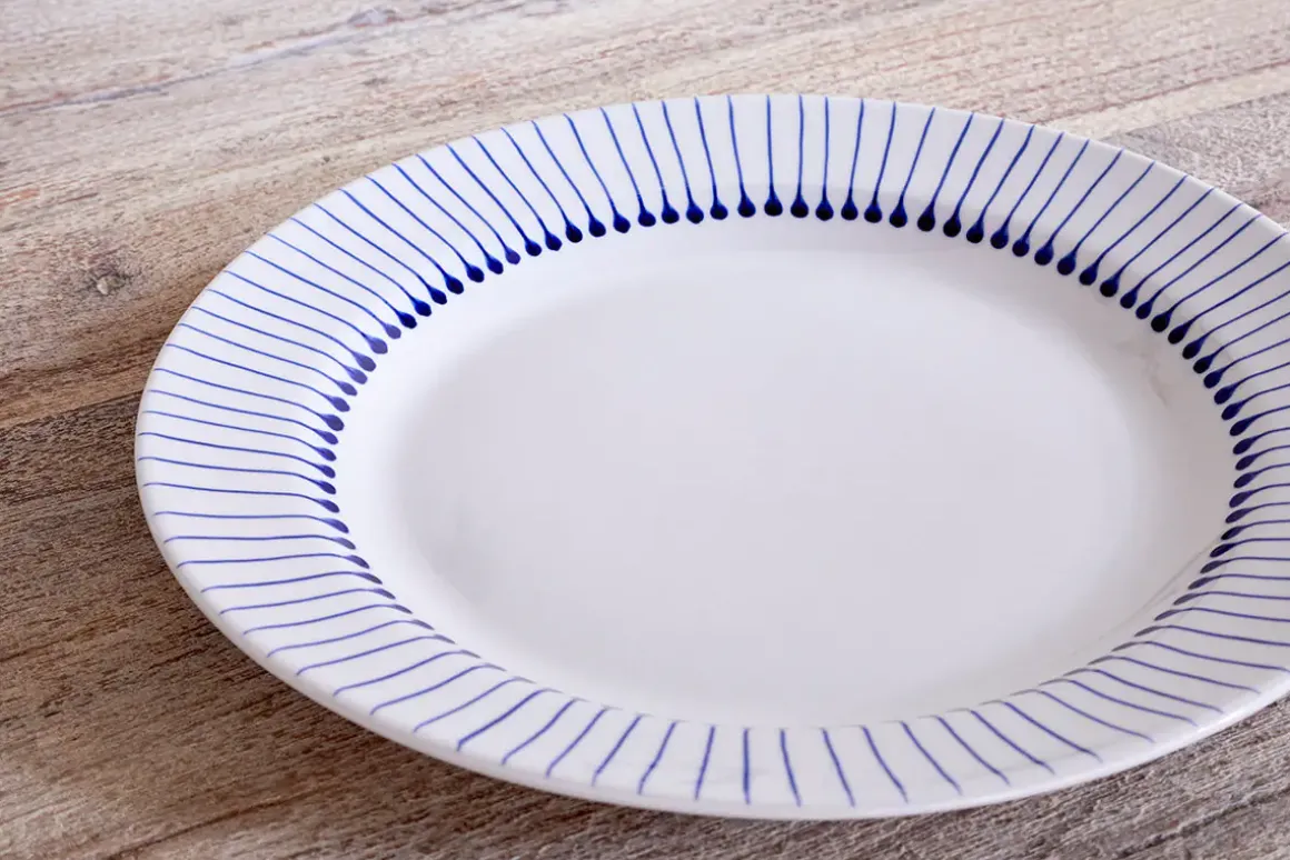 Our beautiful Iba dinner plate is handmade from white clay and intricately hand-painted in Vietnam with a delicate matchstick pattern. Light and fresh, it’s part of our Iba collection offering a clean, modern design. Combining artisanal craftsmanship with practical functionality, it adds a touch of elegance to your every day.
