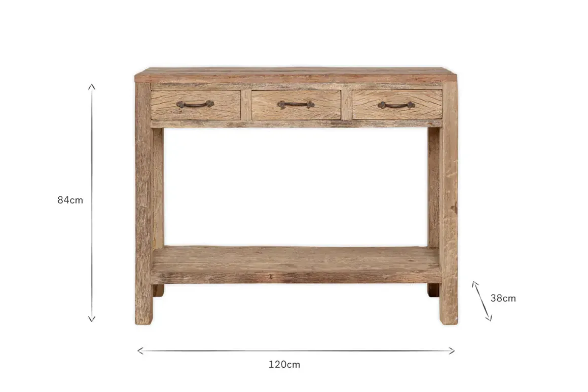 Ibo Reclaimed Wood 3 Drawer Console Table – Natural