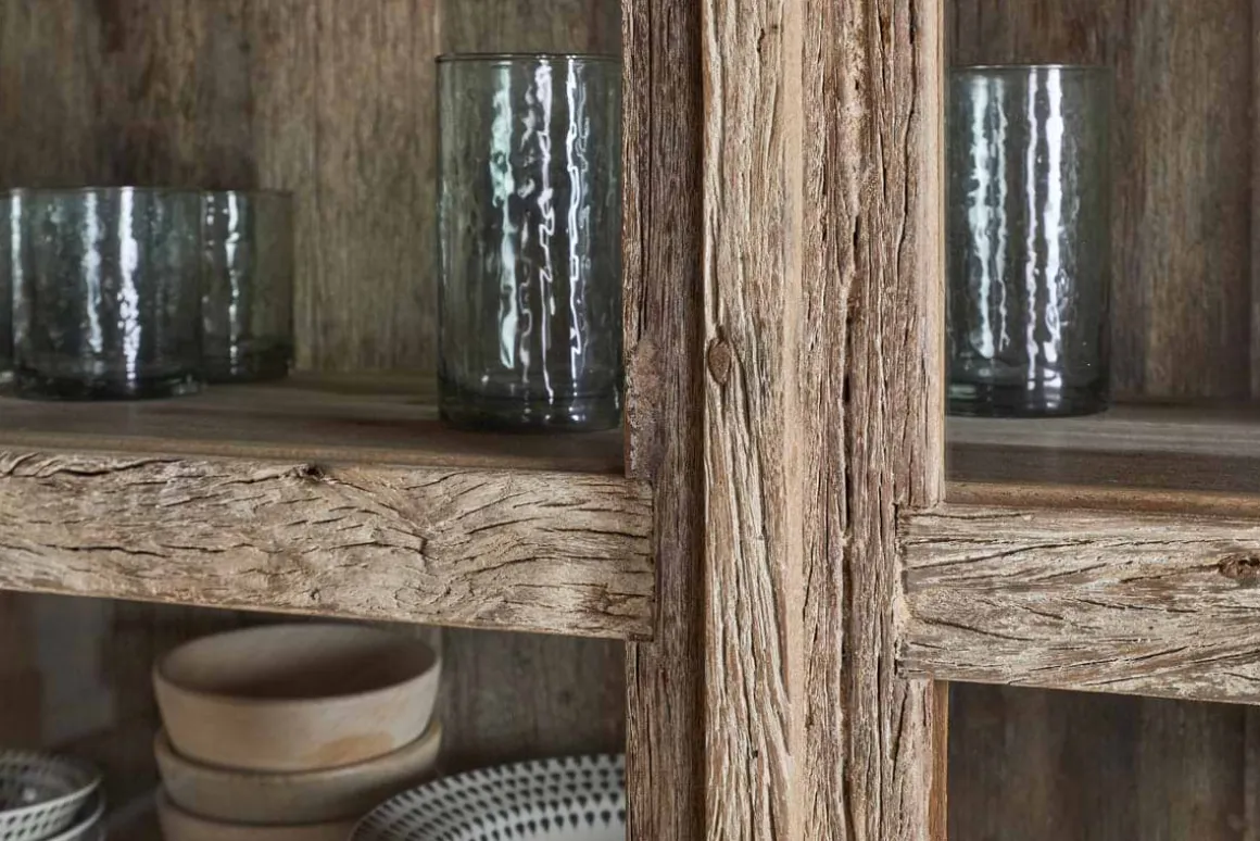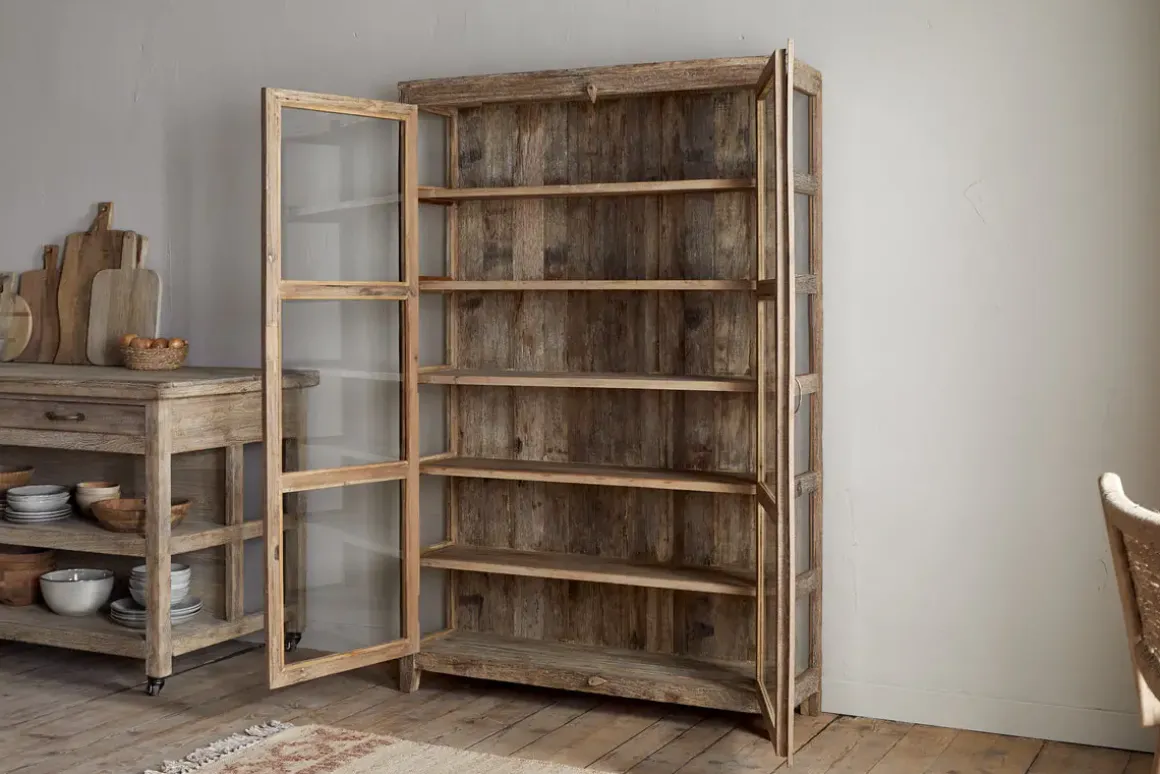 Ibo Reclaimed Wood & Glass Cabinet – Natural – Wide