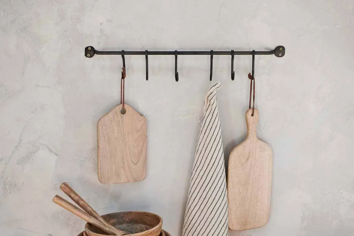 Simple, elegant and practical. Our Ikoma hooks have a stylish solid iron bar and hooks, finished with an attractive matt black effect.Perfect for all kinds of hanging storage, from kitchen to bathroom.