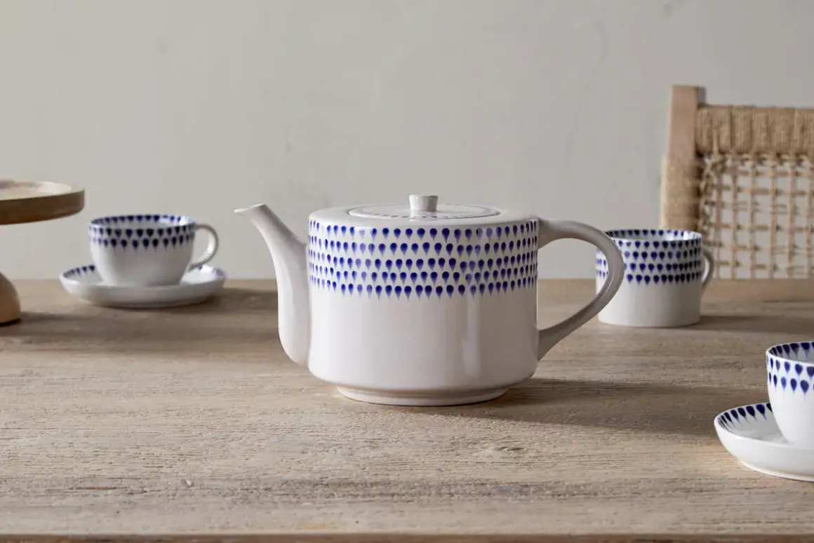 Indigo Drop 4 Person Teapot – Cream & Indigo