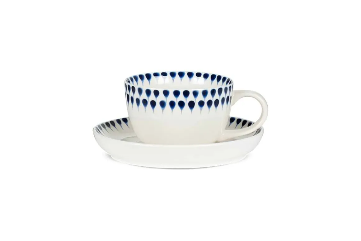 Indigo Drop Cup & Saucer – Cream & Indigo