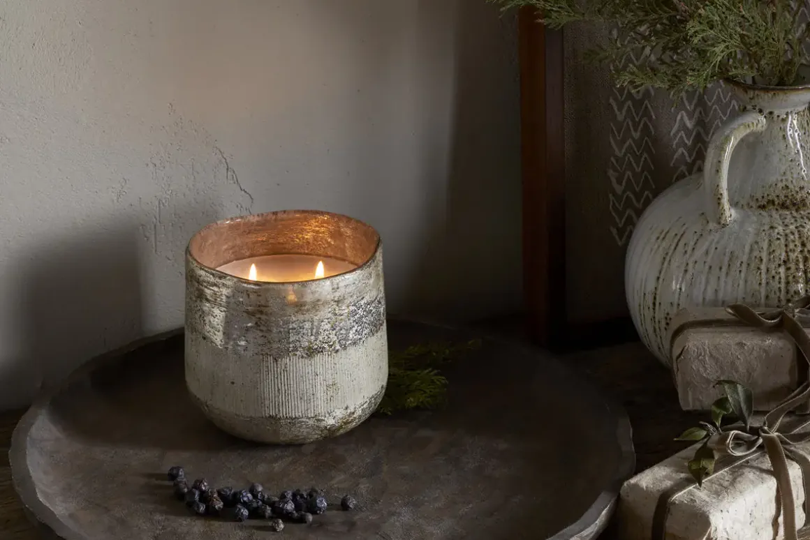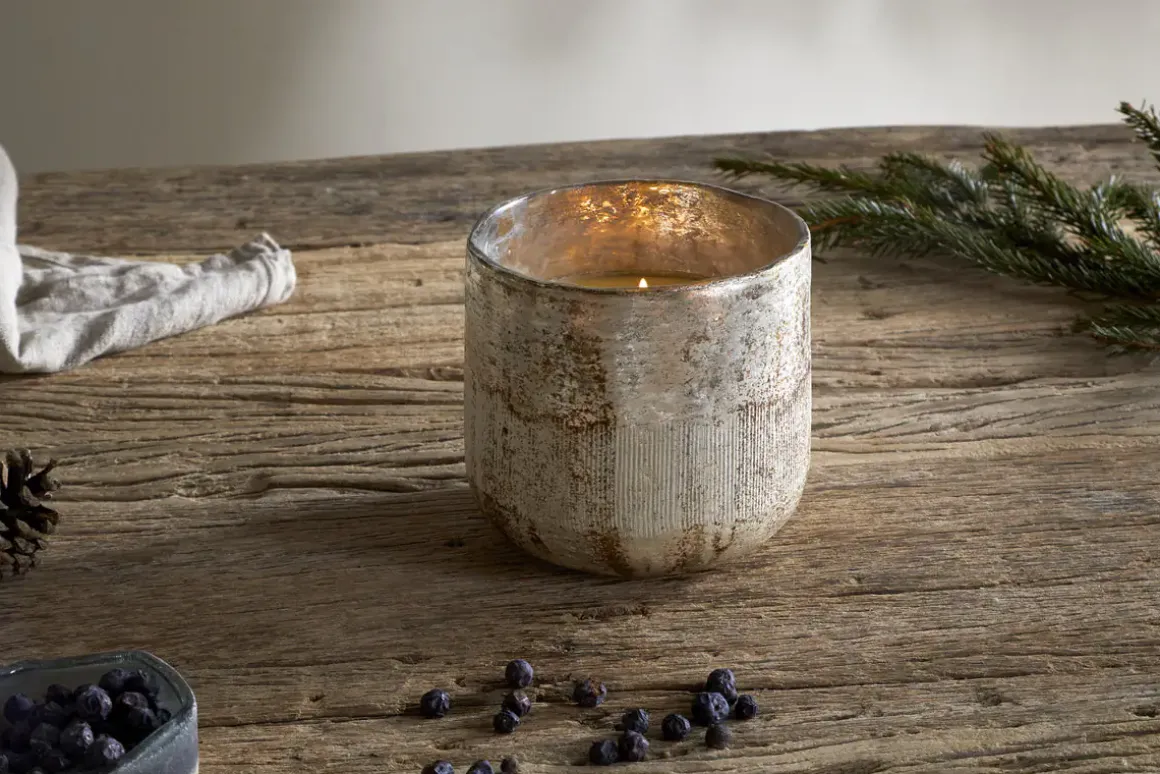 Made in the UK by a family-run business, this scented candle features a bespoke fragrance developed exclusively for Nkuku.Woody notes of eucalyptus and fir, spiced juniper and black pepper are expertly blended to evoke the scent of winter. The vessel is finished in one of Nkuku’s iconic textured styles and intended to be reused once the candle has burned through.