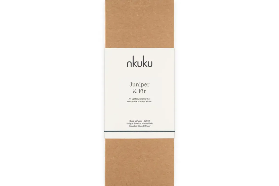 Made in the UK by a family-run business, this reed diffuser features a bespoke fragrance developed exclusively for Nkuku. Woody notes of eucalyptus and fir, spiced juniper and black pepper are expertly blended to evoke the scent of winter. The vessel is finished in one of Nkuku’s iconic textured styles and is designed to be reused as a small vase once the fragrance has dispersed.