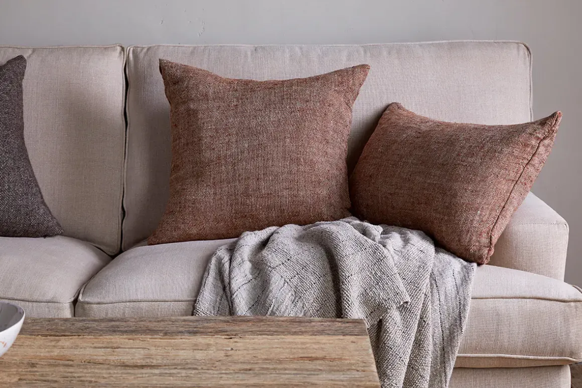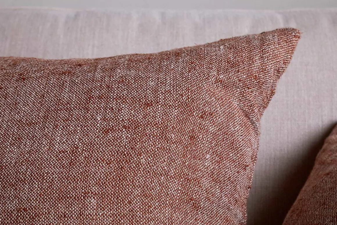A muted yet striking addition to a sofa or armchair, our Kana Linen cushion cover in a delicate rust tone is crafted from tactile slubby linen that is delectably soft to the touch. Style it against a natural backdrop for a fresh feel, or against a dark backdrop for a touch of timeless sophistication. Please note, this is the outer cover only. Available in two sizes. Our feather cushion inners will accompany your cushion cover perfectly. Please note, the size of the cushion inner will display slightly larger than our cushion covers to allow for a plump finish when put together. Pair with our Kana linen throw.