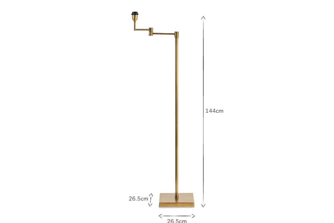 The brass Kara floor lamp combines simple elegance and radiant brass colour tones in this versatile floor lamp contructed from long lasting iron and finished in a brass hue. The square base supports an elegant stem and adjustable arm that provides ample movement to position as a reading light. Floor lamps are perfect for creating cosy space in a living room, and to complete the look, style with our Dia lampshade.