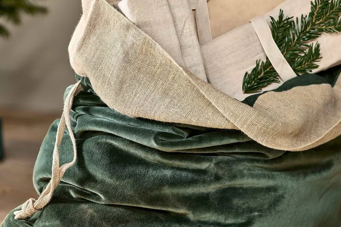Handcrafted in India from luxurious cotton velvet, linen and jute, this Karru sack makes it easy to share your Christmas presents in a sustainable way. The organic textiles are made using traditional techniques and are known for their longevity, meaning you can enjoy this gift bag year after year. Cotton velvet is an environmentally friendly alternative to polyester and the production of linen and jute is low impact. Its deep forest green shade perfectly complements the season and will make a beautiful addition to your festive decor. Simply close with the jute string tie and place underneath your Christmas tree.