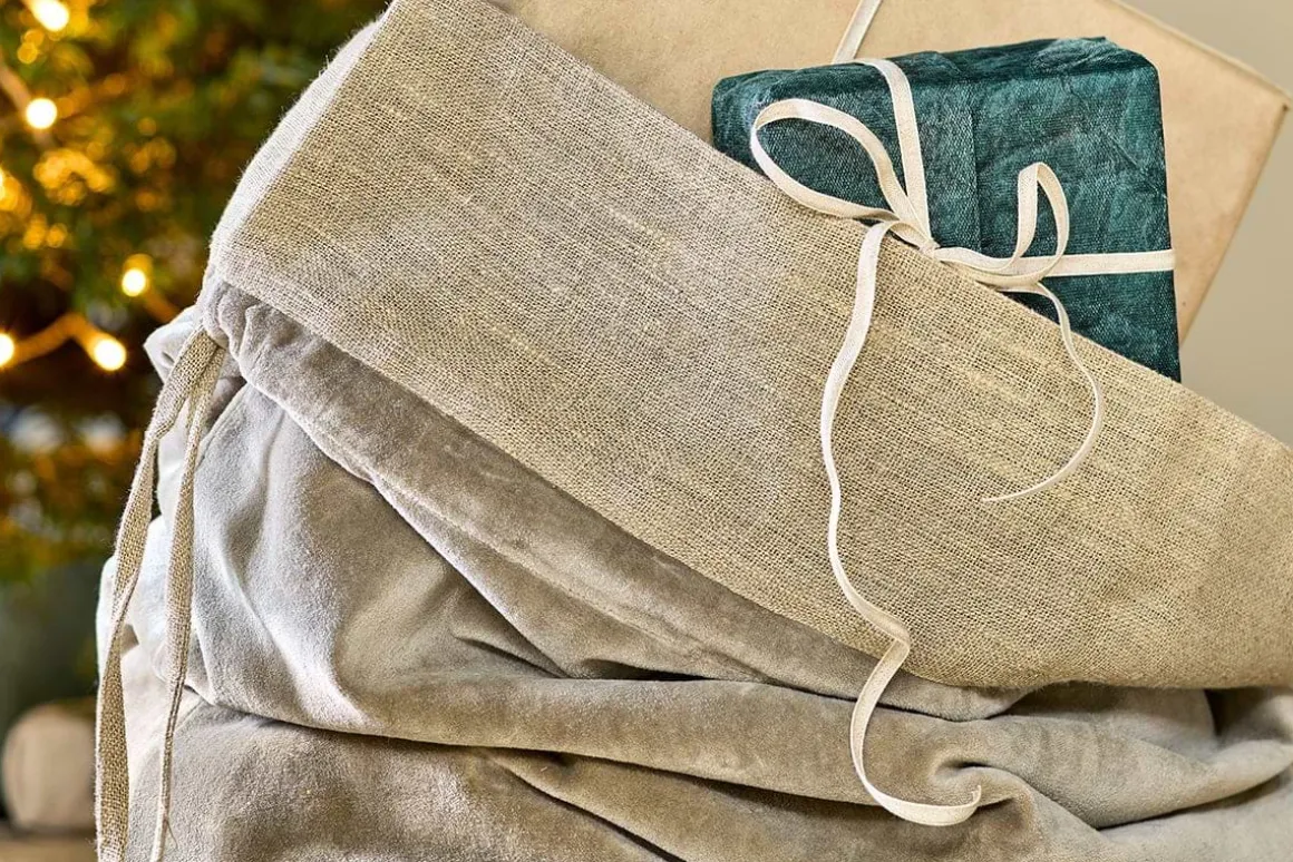 Give your gifts an extra-special touch with our Karru velvet sack. This soft light grey gift bag will add a luxurious note to your Christmas festivities and is handcrafted from a distinctive combination of rich cotton velvet with rustic linen. Cotton velvet is an eco-friendly alternative to polyester and the production of linen doesn’t involve chemicals or excess waste. It also has an easy-to-use jute string tie, making this sack a stylish, practical and sustainable way to share your gifts with loved ones.