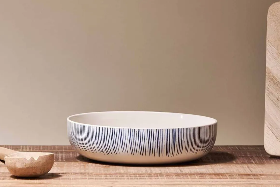 Our Karuma Ceramic Serving Bowls are handmade in Vietnam. Their distinctive design is hand etched and hand painted creating this eye-catching collection. These curved serving bowls have an elegant yet practical shape. They are perfect for holding fruit, salads or delicious puddings.