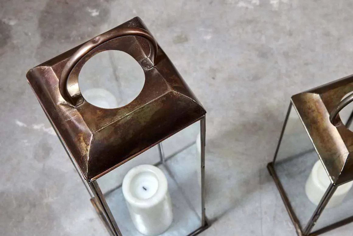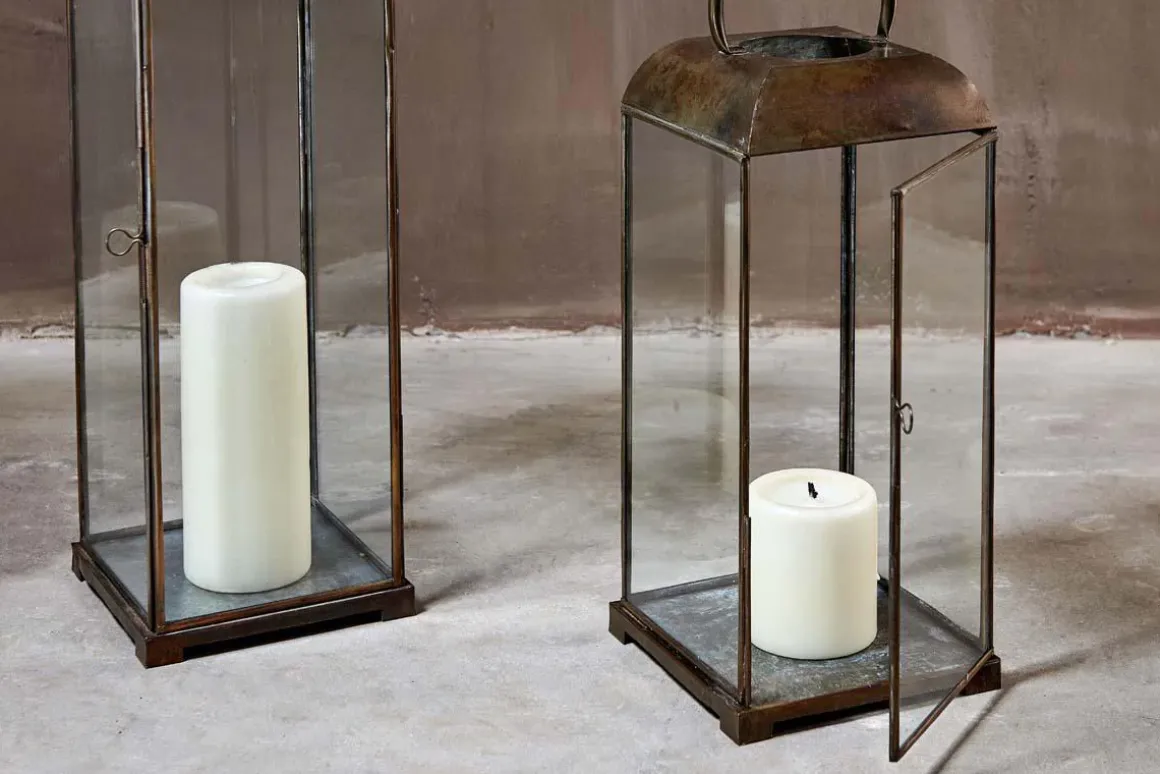 To care for your lantern, we recommend regularly wiping with a soft, dry cloth to prevent the build up of dust or dirt. We recommend a microfiber cloth in the circular motion for the glass. To remove excess wax, use warm water with a mild dish soap, be sure to dry immediately and do not soak. Indoor use only. Please position the candle securely and ensure that the flame is not directed at the glass. This product will get hot in use. Keep out of reach of children. Wait until fully cooled before handling. Never leave a burning candle unattended.