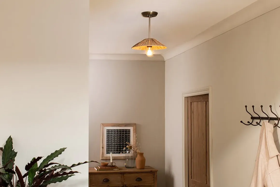 Our Katari ceiling light brings character and interest to any interior. Crafted from textured raffia and robust iron, the lamp shade’s construction and classic shape maximises the amount of light. The weave of the raffia creates small gaps which enhances the ambient glow, as well as adding an appealing tactile quality. A metal fitting in a warm antique brass finish completes the look, perfectly pairing with the natural palette of the raffia. Position this lamp in multiples over a kitchen island for a stylish display.