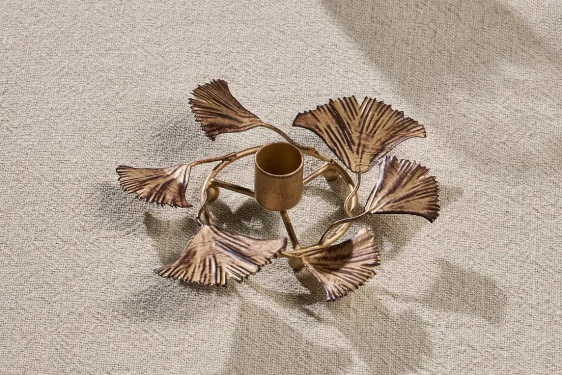 Make a sophisticated statement with our Khamila leaf candle holder in gold. We’ve added this brighter finish to our popular Khamila range for extra choice when planning your seasonal decor.The delicate leaves and elegant wreath-shaped arrangement are a remarkable feat when you consider it is hand crafted from metal with the gold finish adding a luxurious feel. This candle holder holds five dinner candles, making it a truly magical centrepiece for your dining table. Style with our dinner candles.