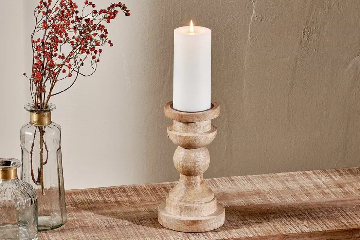 We love these chunky yet elegant Kibibi candle sticks. Their soft curves and shapes accentuate the beauty of the natural mango wood. They are substantial enough to work on their own or as a beautiful collection of candlesticks on a mantelpiece or windowsill. Click here to view our collection of candles.