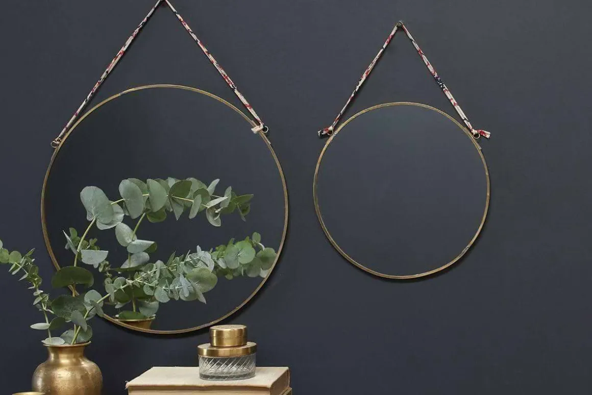 Our stunning Kiko round mirrors provide simple, elegant sophistication. The antique brass is skilfully shaped around the glass creating not only a useful mirror but a striking decorative feature. Each one is strung with a recycled sari tie.
