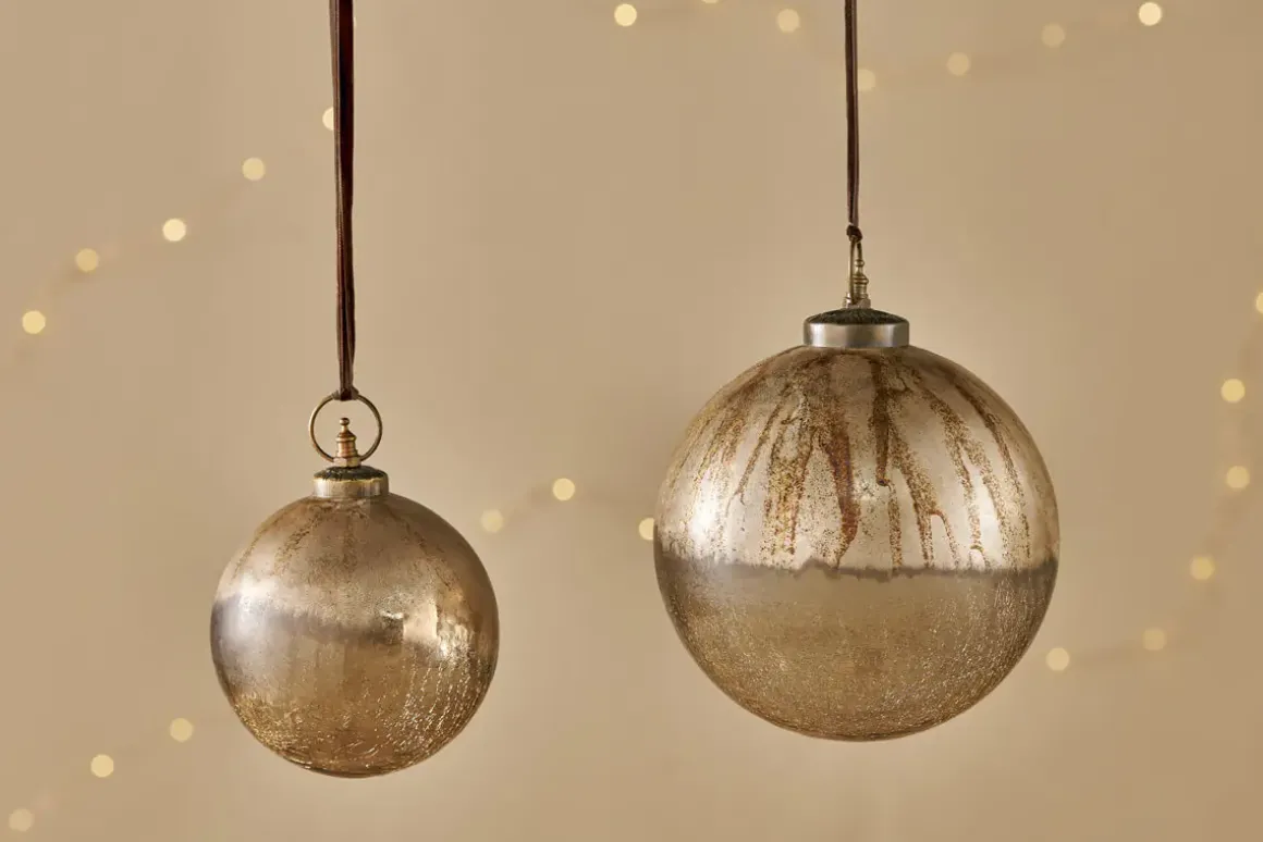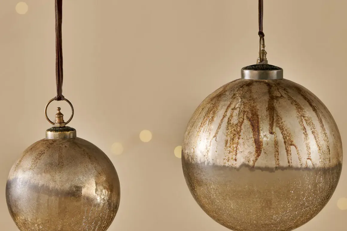 Bring a subtle, sumptuous look to your festive decor with our gold crackle Konara Baubles. Each bauble has a unique metal foil crackle glaze finish which creates an opulent sparkle, whether hung on a tree, gathered in a garland or used as table decorations. The antique brass hanging clasps give these a sophisticated finish.