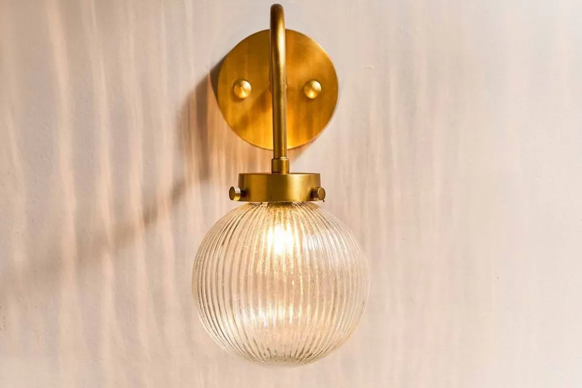 The Konnie globe wall light is perfect for bringing warmth and light to a bathroom. The glass globe has an interesting ribbed finish, that helps to diffuse the light. The globe is set into a brass fixing which joins an elegant swan neck arm and brass wall fitting. This timeless, well designed light would sit well either side of a mirror in a bathroom space. The clear glass and warm brass materials make the perfect pairing.