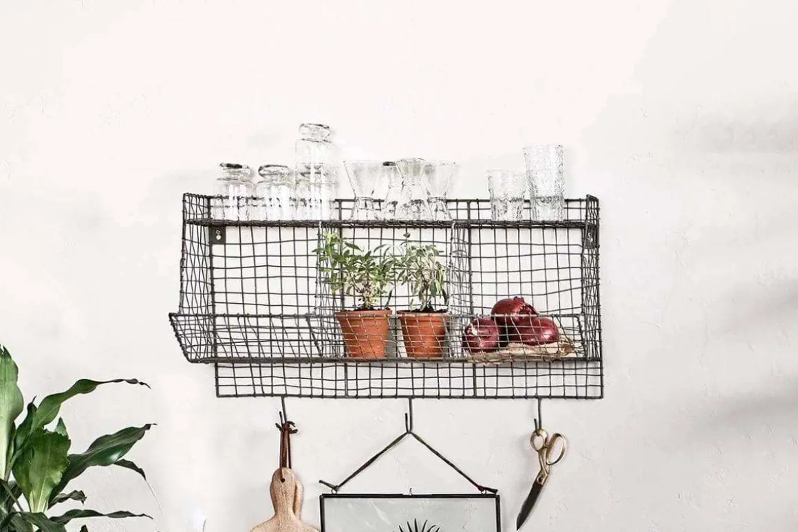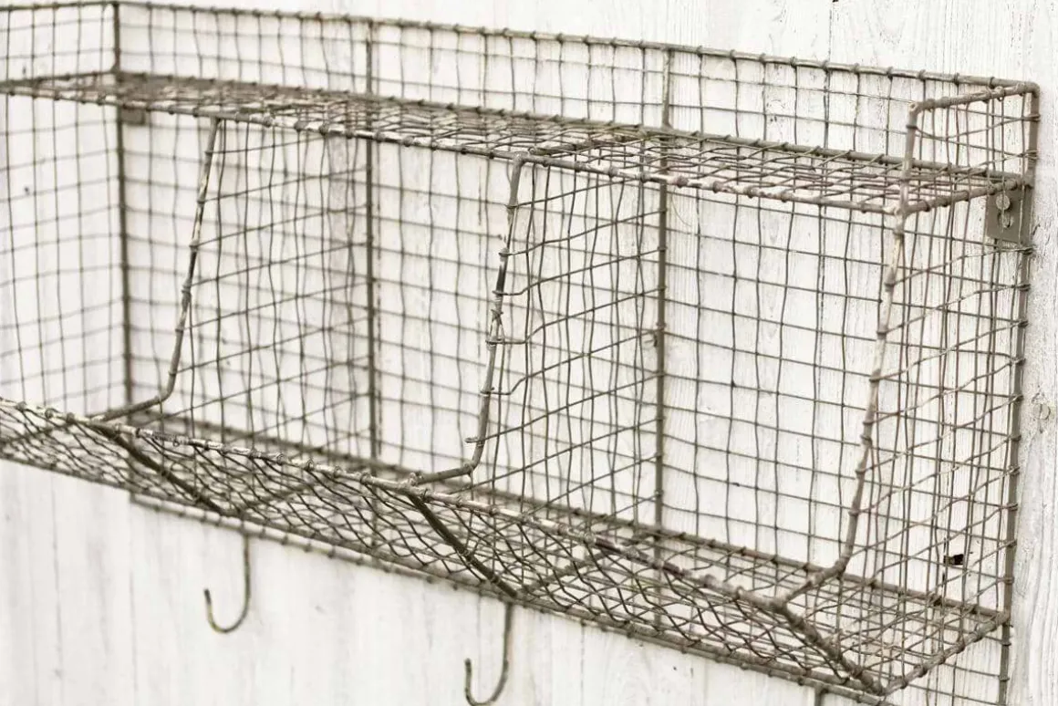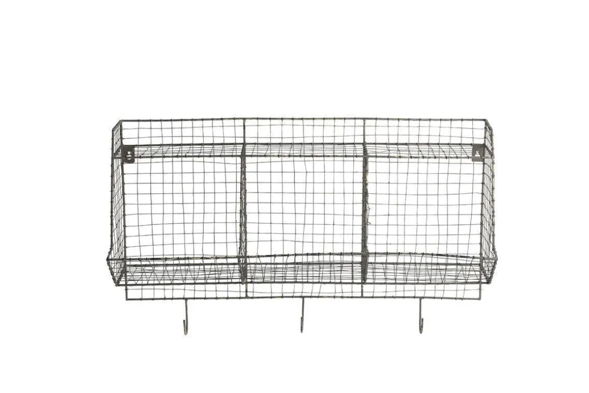 Organise your home office with this practical wire storage shelf unit. Each wall hung shelf comes with three large compartment for sorting your belongings and three practical hanging hooks.