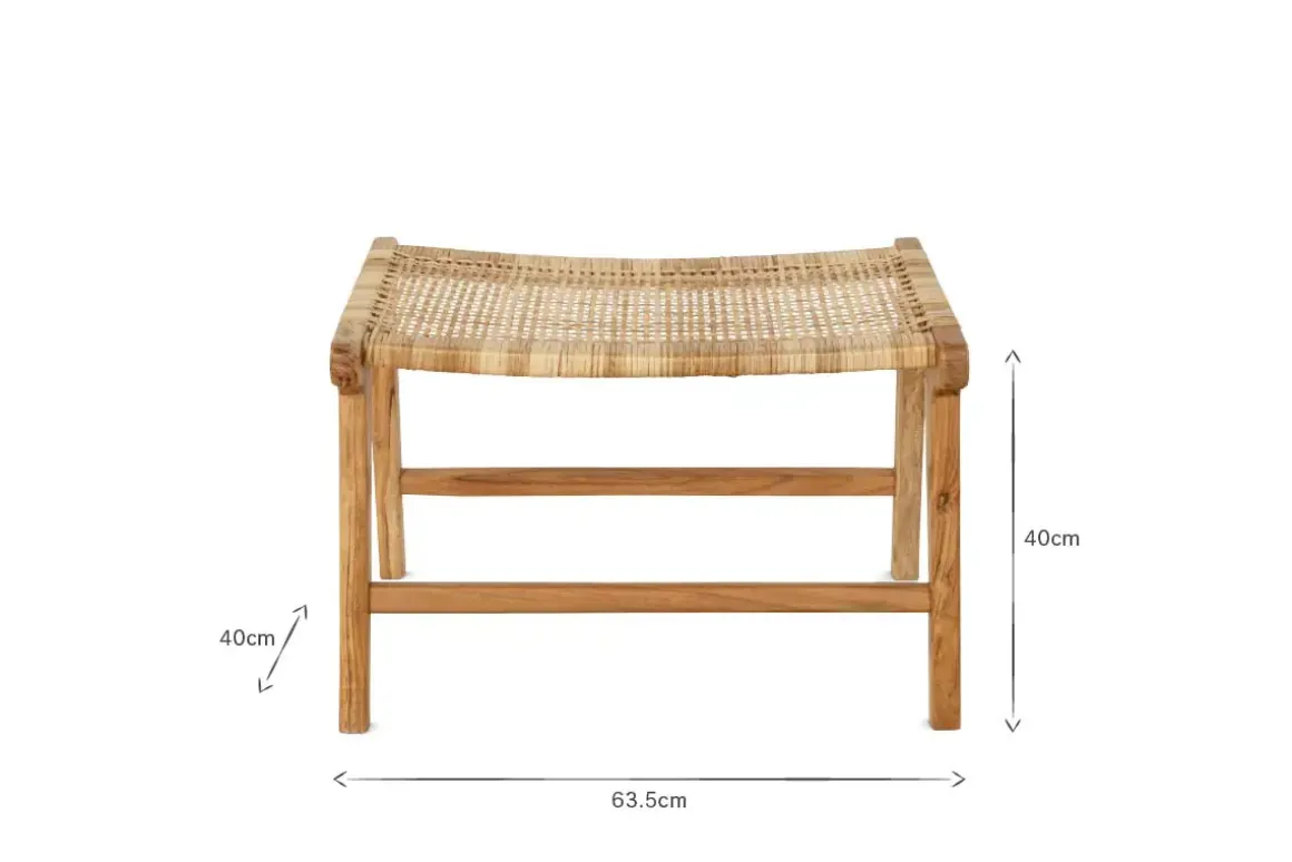 The skill and experience of the artisans who created this footstool are perfectly illustrated by the robust wooden frame and intricately woven rattan. Crafted using traditional techniques, the footstool has an appealing handmade quality which adds character and interest. The neutral tones of the natural materials bring a warm, stylish touch to any room. Both acacia wood and rattan are renewable materials which have minimal environmental impact, making this footstool a sustainable choice.