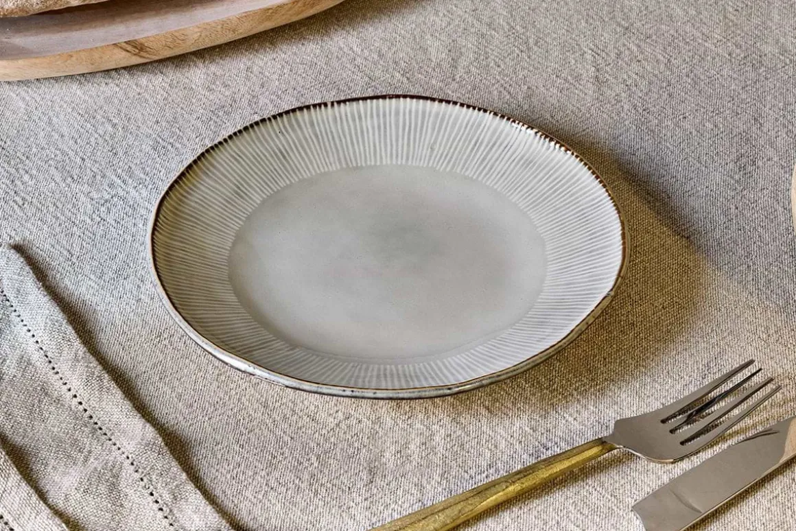 Elegant and stylish, our Malia side plates have a sense of pared-back sophistication. Handcrafted from clay using traditional techniques, the plates have an attractive neutral hue which enhances their organic quality. The artisans shape the plate on a potter’s wheel before firing with a cream reactive glaze. This means the glaze reacts to the heat of the kiln and changes in any number of organic ways. As a result, each piece is unique so you can enjoy tableware that is truly individual. The look is completed with handpainted detailing around the rim. Style with the rest of our Malia collection for a unique dining set.