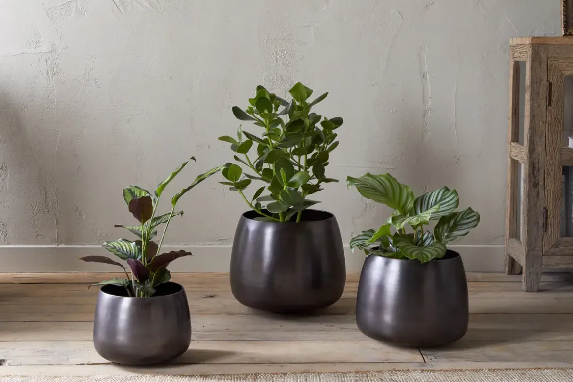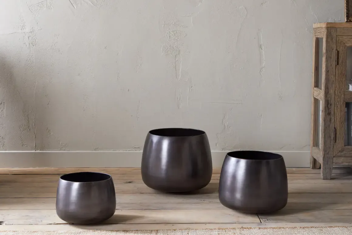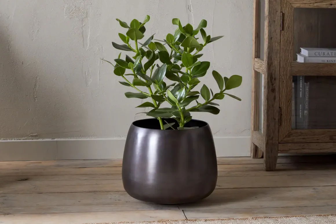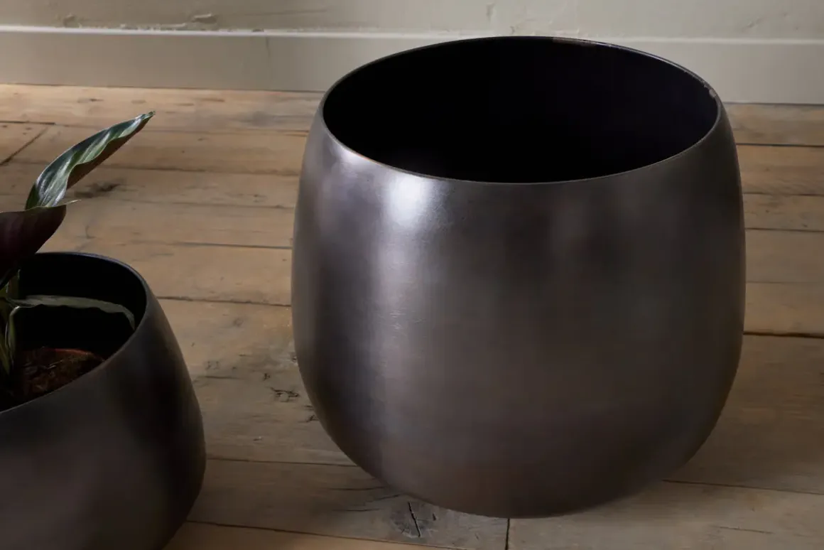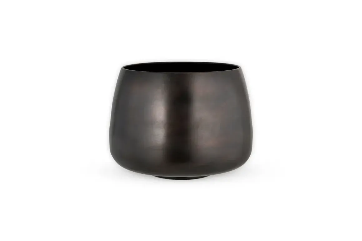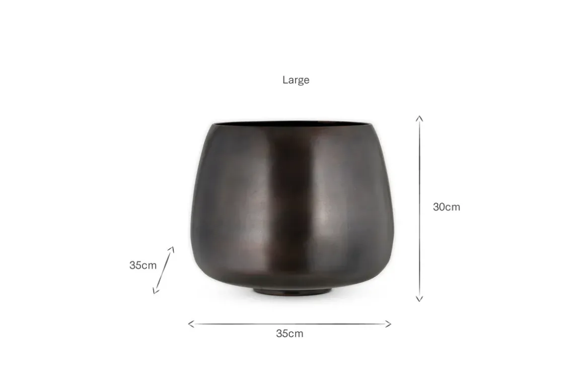 With its contemporary design and aged bronze finish, this indoor plant pot provides the perfect backdrop to enhance the rich greens of houseplants. The warm, subtly weathered surface adds depth and character, making it easy to style in a variety of interiors. Available in three sizes, it can be displayed solo or grouped in twos or threes for greater visual impact.