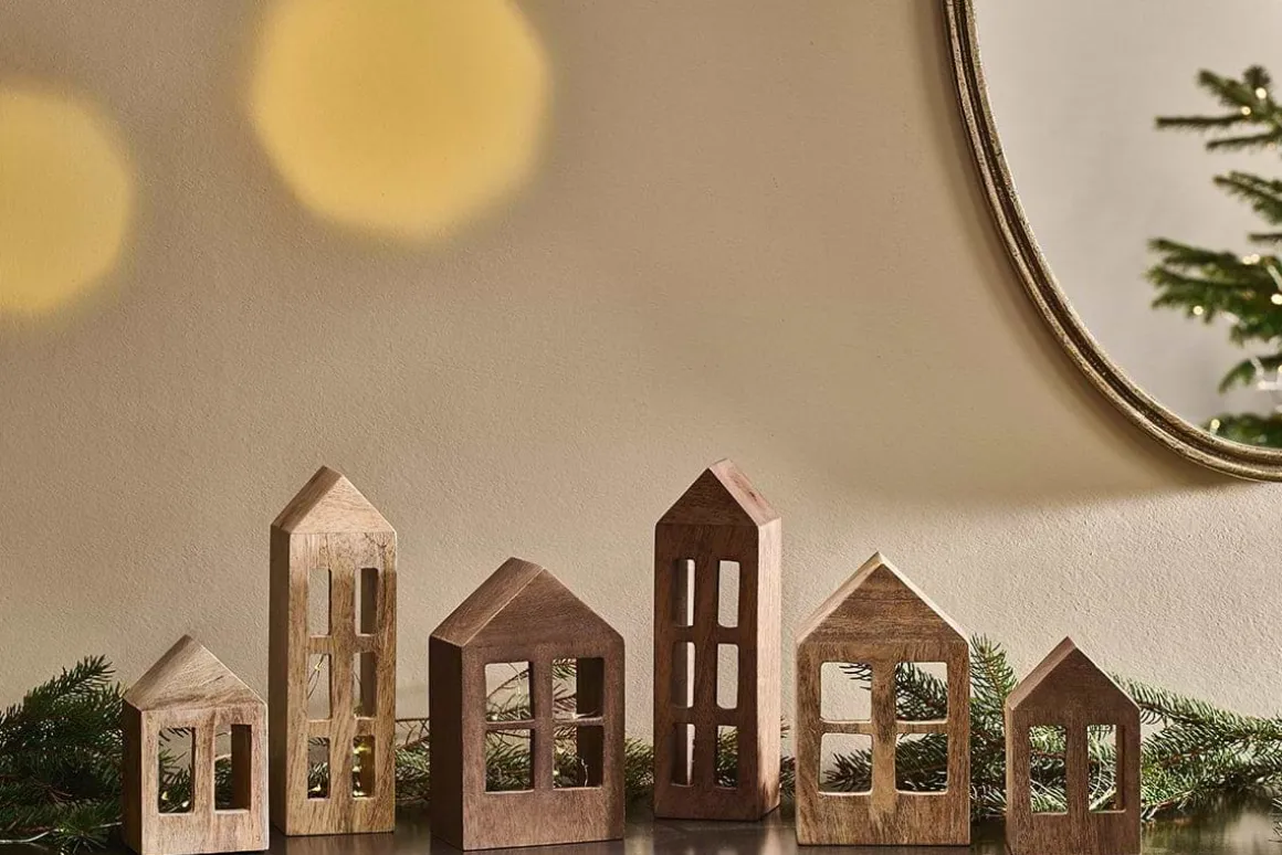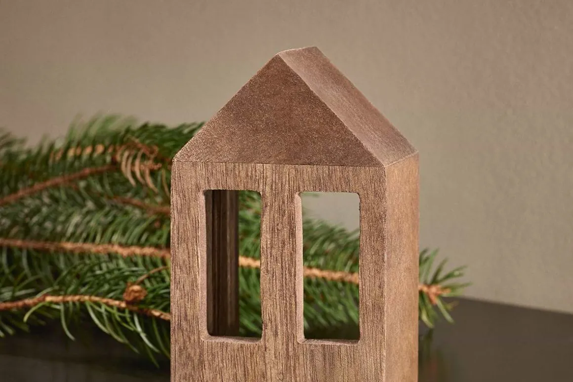 Crafted from mango wood, the rich dark brown tones of this Mandar wood house make it a warm and sophisticated addition to your home. We love how the natural wood grain is on display, giving it a beautiful rustic style. Group different sizes and colours together on a windowsill, mantelpiece or shelf for a magical Christmas display. We choose mango wood thanks to its sustainability – the mango trees are only cut down once theyve stopped bearing fruit and their short growing cycle means farmers can plant more, providing them with a supplementary income. Please dont use this product with candles.
