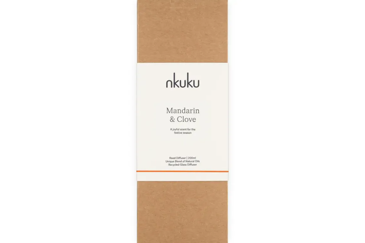 Made in the UK by a family-run business, this reed diffuser features a bespoke fragrance created exclusively for Nkuku. A timeless blend of traditional spiced mandarin, warming clove, and woody cinnamon evokes the joyful scent of the festive season. The vessel is finished in one of Nkuku’s iconic textured styles and is designed to be reused as a small vase once the fragrance has dispersed.