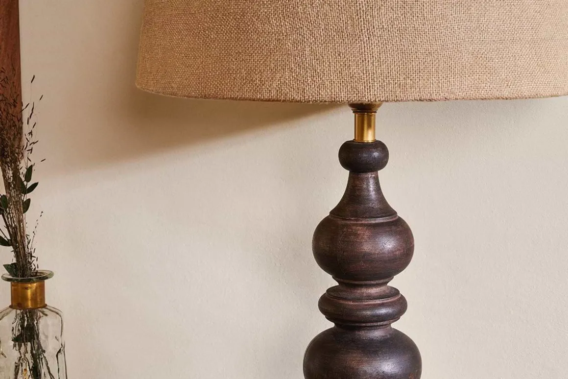 Classic and sophisticated, our Manua table lamp is handcrafted in India from mango wood, using traditional woodturning methods. Its elegant curves and warm dark palette give it a timeless quality which looks particularly stylish on a sideboard or console table. The lamp is finished with metal fittings in rich shades of antique brass, completing the luxurious look and feel. Mango wood is a sustainable material which is only harvested when the trees have stopped bearing fruit. Pair with our Dia jute lampshade for a striking aesthetic.