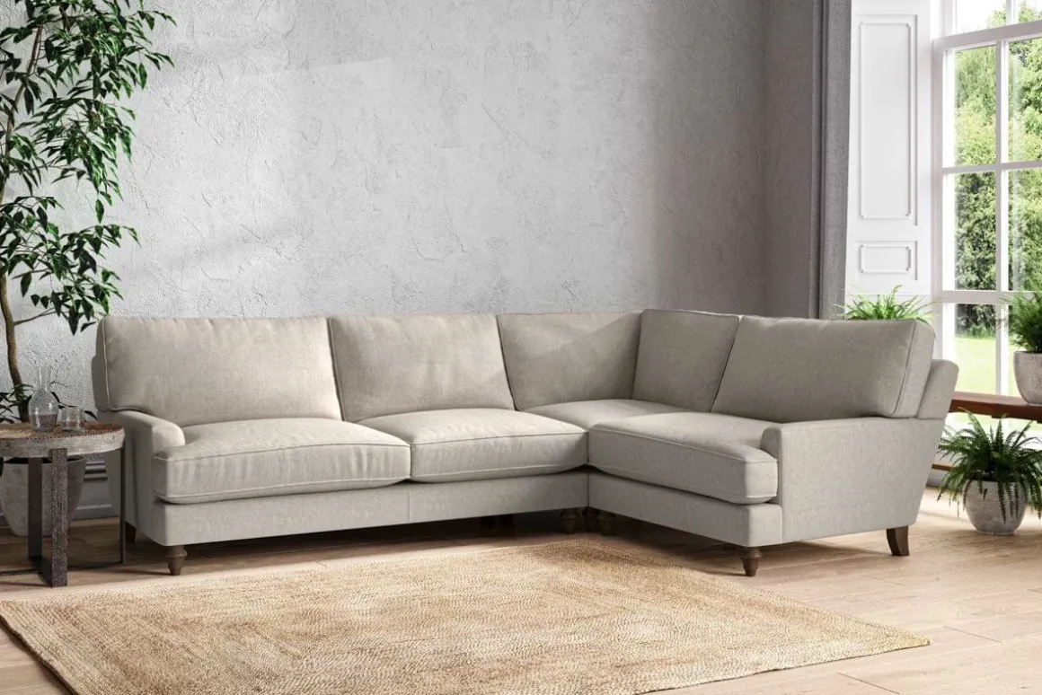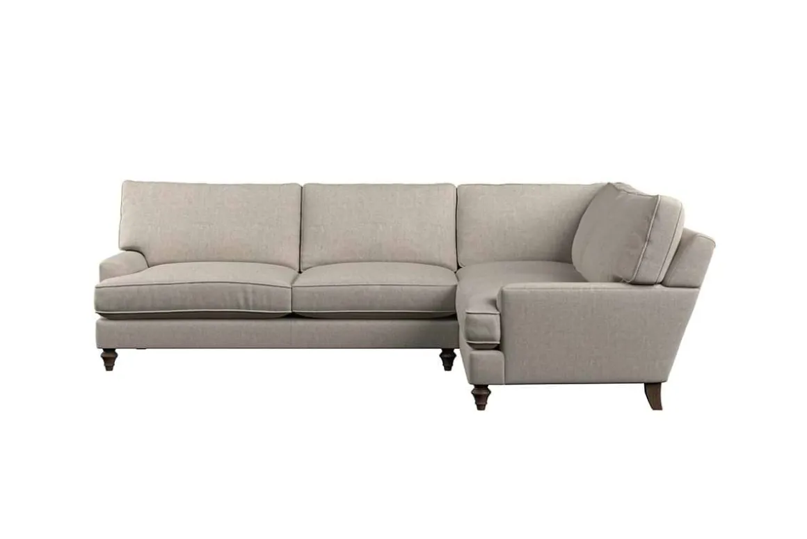 The classic design of our Marri grand right hand corner sofa has a timeless appeal that suits almost any interior. Each piece is handcrafted by our specialist team in our Nottinghamshire workshop combining traditional techniques with exceptional craftmanship. Well-considered details ensure lasting quality, including piped edging, separate back cushions, and hand-turned hardwood feet.