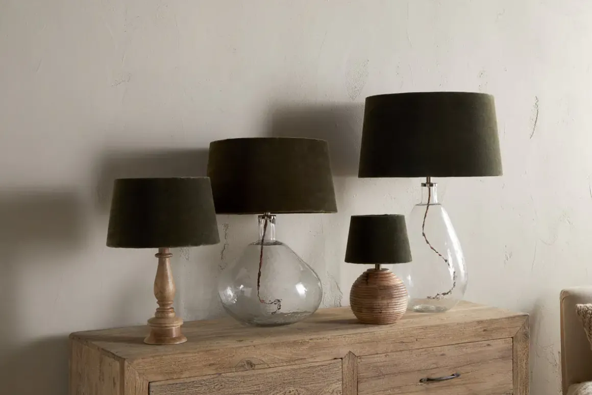 Mendai Velvet & Linen Lampshade – Moss Green