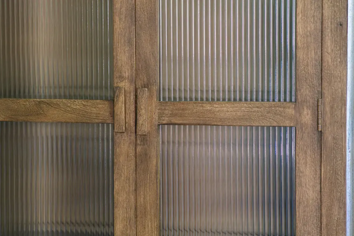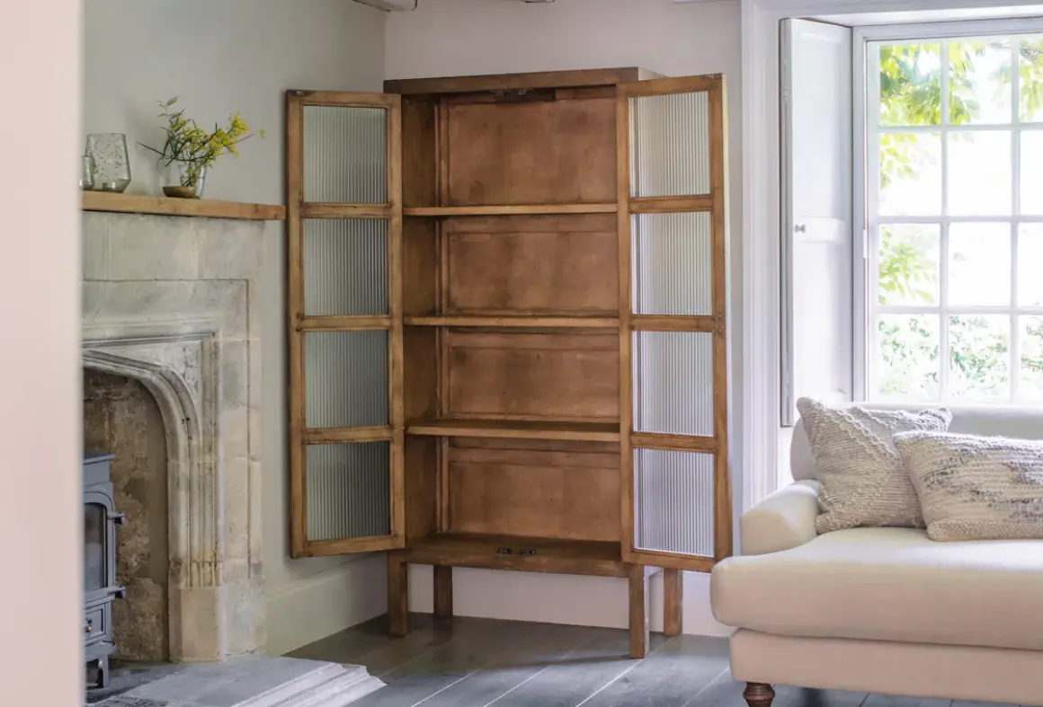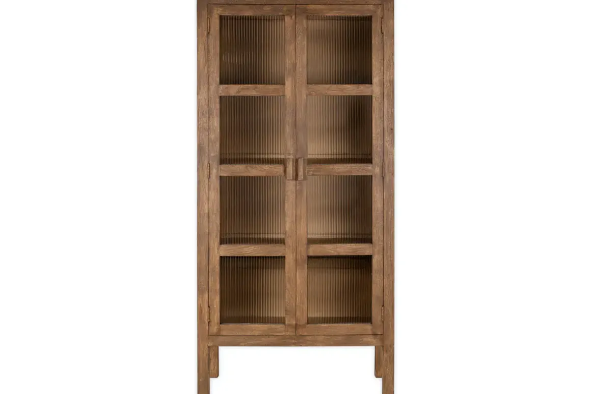 Mendani Mango Wood & Fluted Glass Cabinet – Walnut Stain