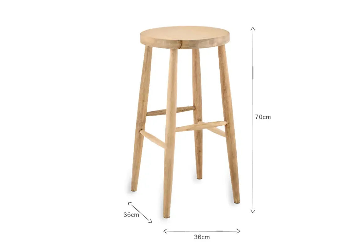 The Mengwi round bar stool marries sustainable mango wood with traditional carpentry in a simple and understated design. The natural grain creates a tactile and appealing texture that enhances the stool’s rustic look. It has four tapered legs and a practical wooden footrest. The Mengwi is the perfect place to perch or display a vase or planter.
