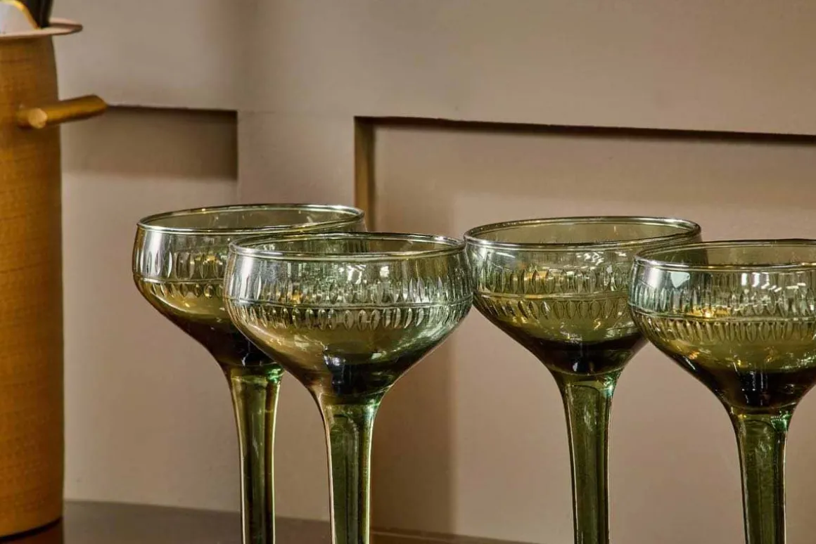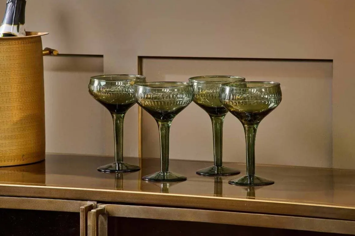 Mila Champagne Glass – Dark Emerald – (Set of 4)