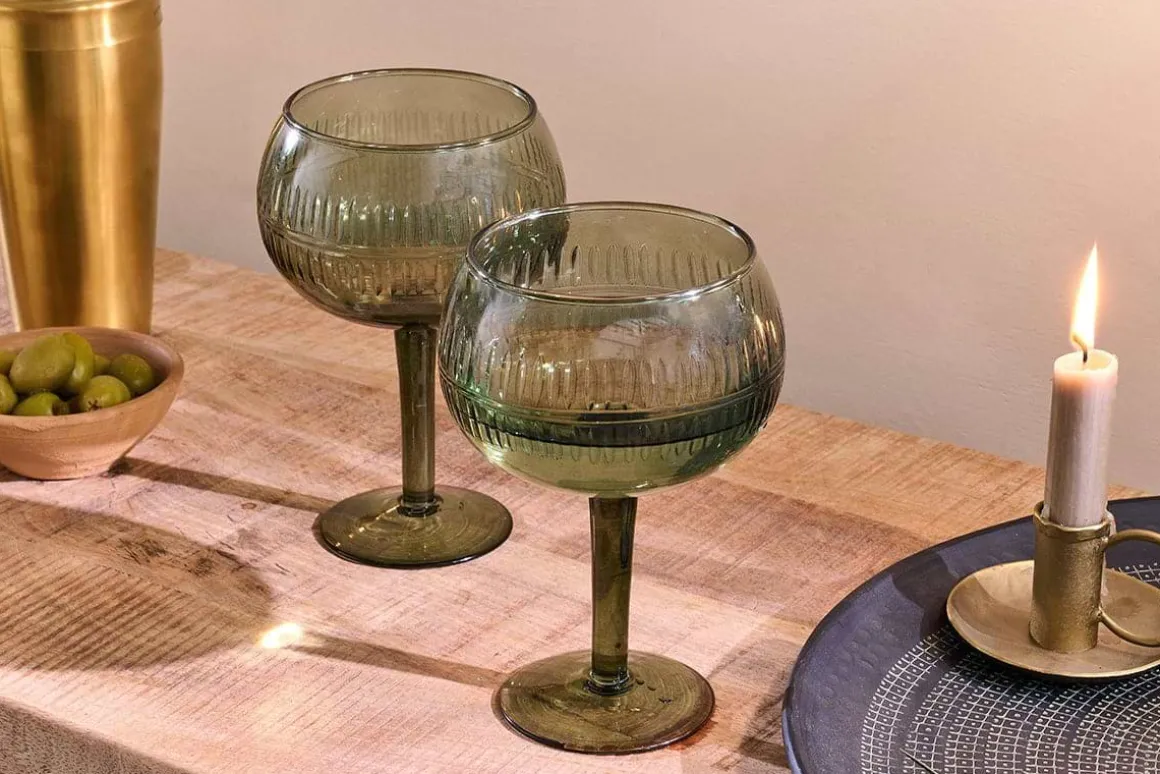 The generous, curvaceous proportions of our Mila gin glasses, make them a pleasure to behold. The rich, emerald green colour of the glass and attractive etched detailing adds to the delightful charm of these elegant recycled glasses. Simply add a delicious UK crafted gin.