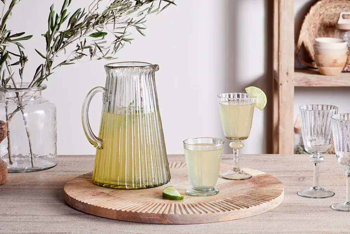 Our new Minati collection boasts an elegant silhouette that is both classic and contemporary and has been designed with useability and longevity in mind. The hand-blown recycled glass gives it a subtle green-tinged hue and it is appealingly tactile to hold. The overall organic aesthetic brings understated style to any table setting from relaxed occasions to more formal dining. Coordinates with the Minati tumblers and jug.