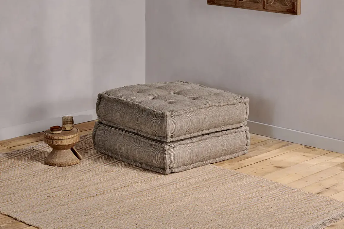 Our effortlessly relaxed Nadeeka design is perfect for creating a laid-back atmosphere in your living space. Part of a modular collection, this foot stool can be used solo, but is easily paired with other pieces in the range. Additionally, it has its own in-built versatility as it comes as two stackable items. Choose to stack for a raised look, or use as two floor cushions. With a focus on comfort and versatility, the soft-grey linen design is generously filled with recycled wool, making this a cosy spot to curl up and recline. Please note, there is a sofa extension and footstool within this range.