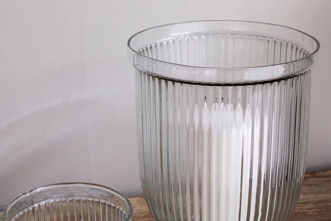 Carefully crafted from recycled glass, our Nia Candle Holders feature a sophisticated fluted design. Once lit, they create a beautifully patterned glow that enhances the atmosphere of any space, and on a stand, the light is elevated, adding an elegant touch to your table. Combining sophistication and sustainability, the Nia Candle Holder is perfect for both everyday use and special occasions. Available in two sizes.