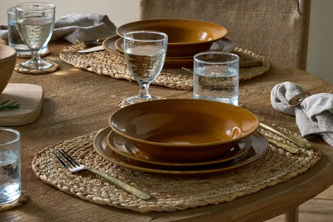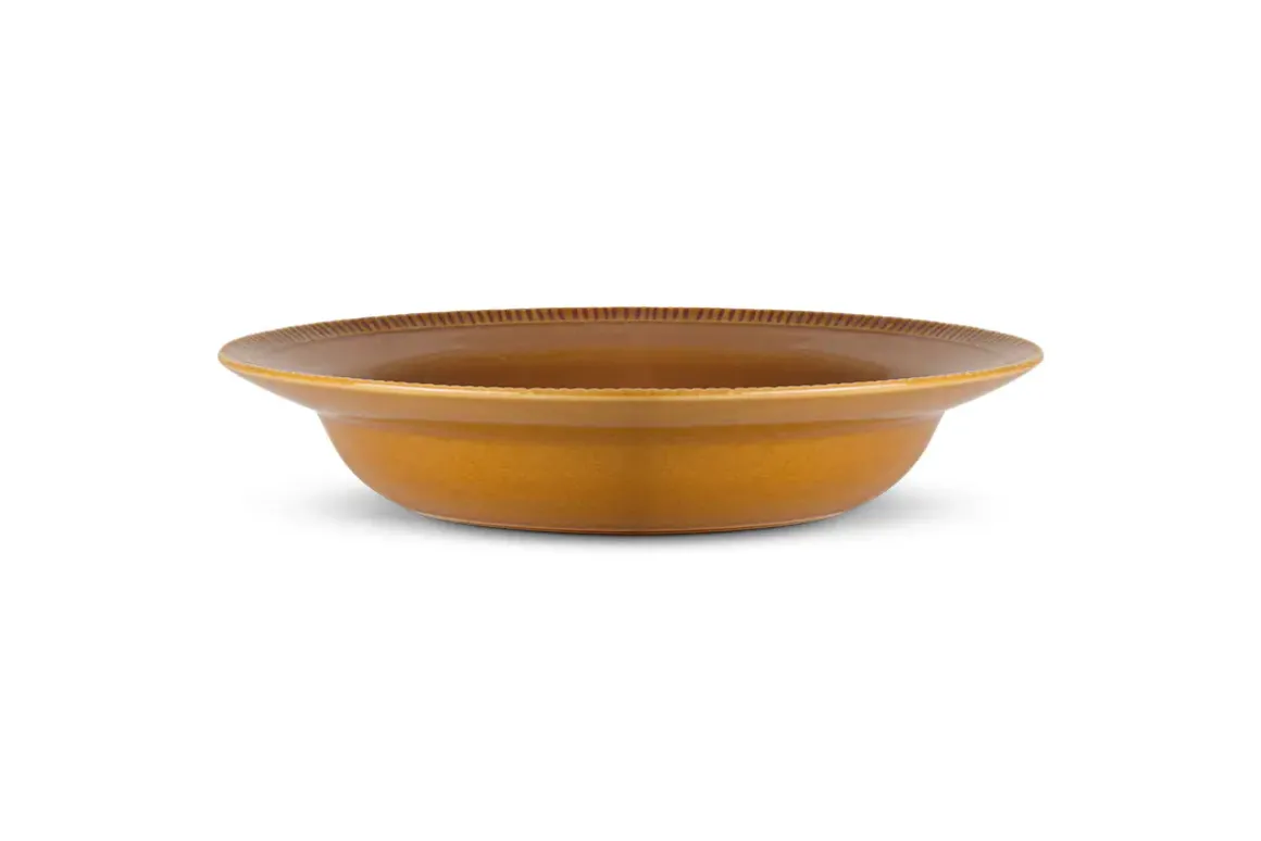 Our new Nuwara pasta bowl is a generously proportioned bowl with a simple textured patterning inside that draws the eye. The entire Nuwara tableware collection is beautifully understated in style and design with a distinctive mustard glaze offering a timeless splash of earthy colour at mealtimes. The glaze has a distinctly rich and reflective quality, while the hand-etched line design brings a simple and pared-back aesthetic to the table.