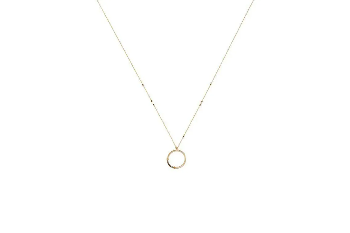 This stunning Obini necklace is handmade from pyrite and gold plated brass. The asymmetric setting of pyrite stones is complimented by the scatter of pyrite beads on the chain.