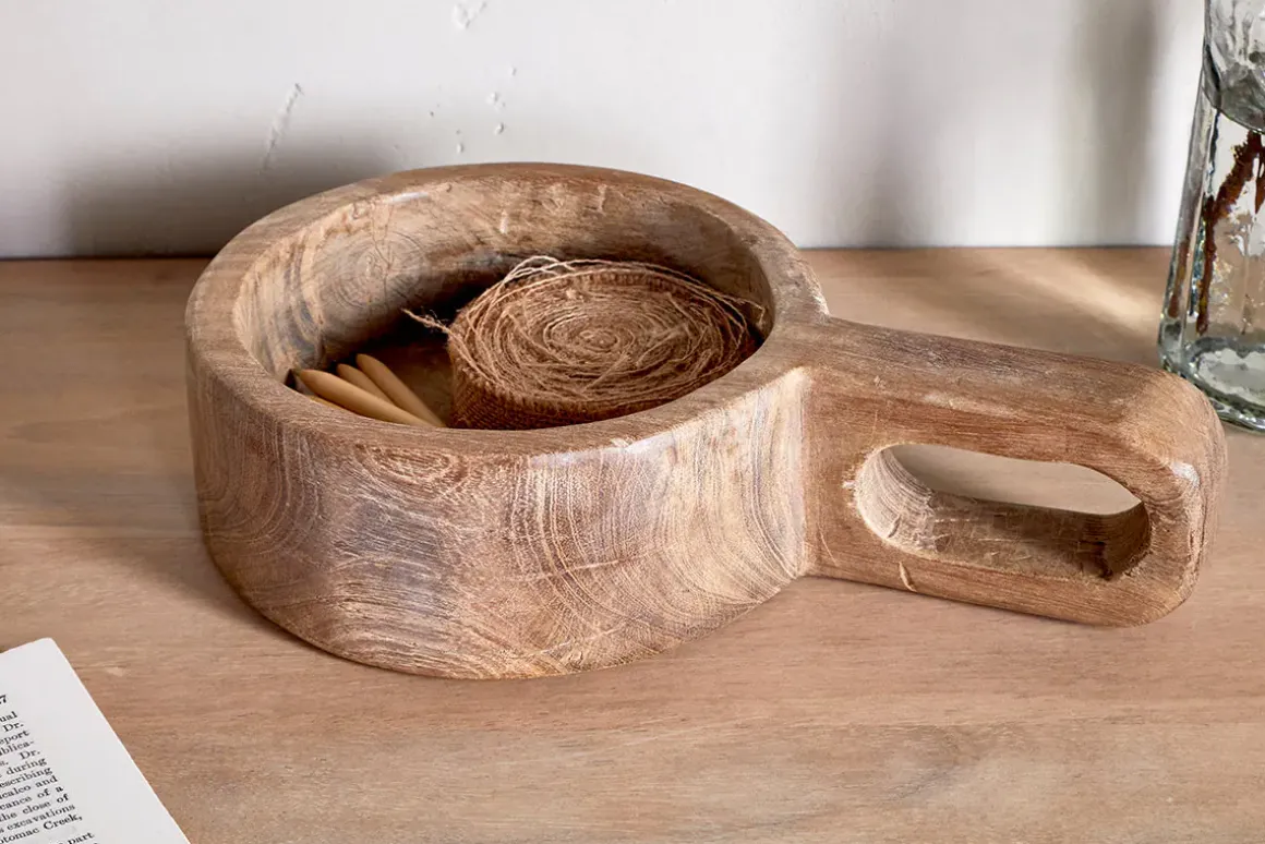 Our striking wooden Okara Storage Pots are crafed from reclaimed wood, and are a unique and versatile addition to any space. Ideal for entryway, side or console tables, they serve both as a functional spot for those little bits and bobs and as beautiful decorative pieces that add texture to a room. Standalone or as part of a curated shelving display, these pots stand out as an ornamental piece in their own right.