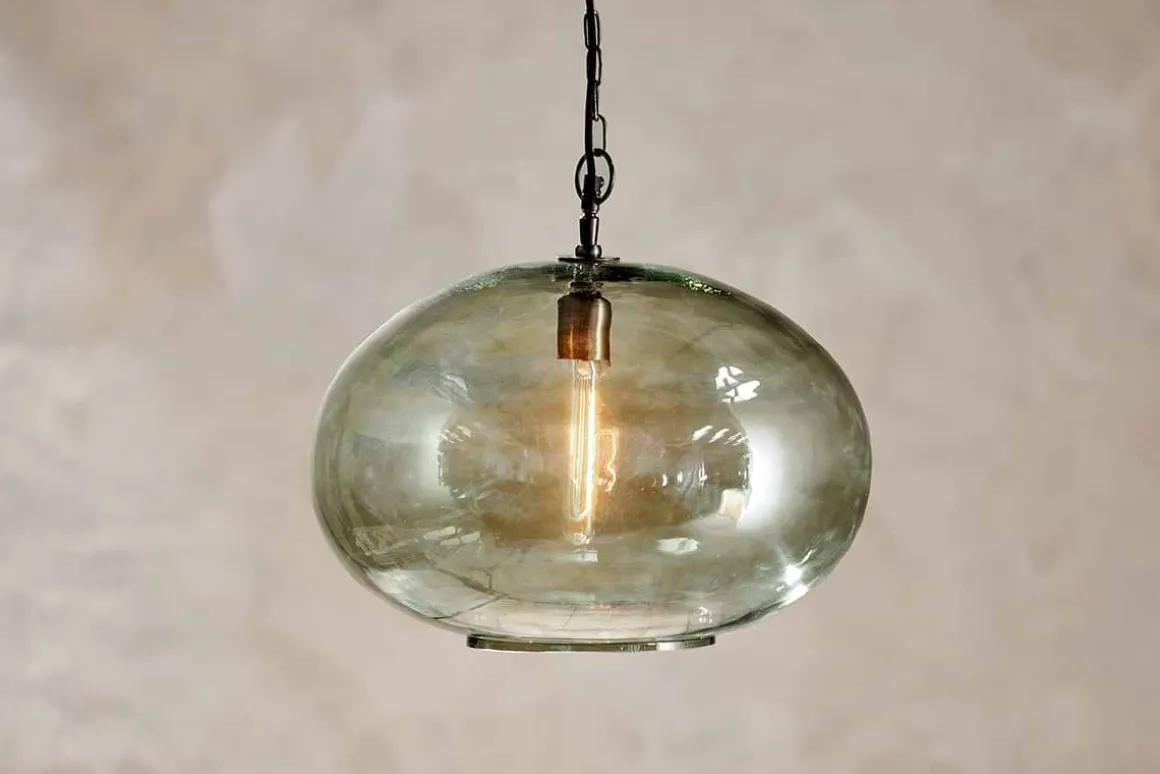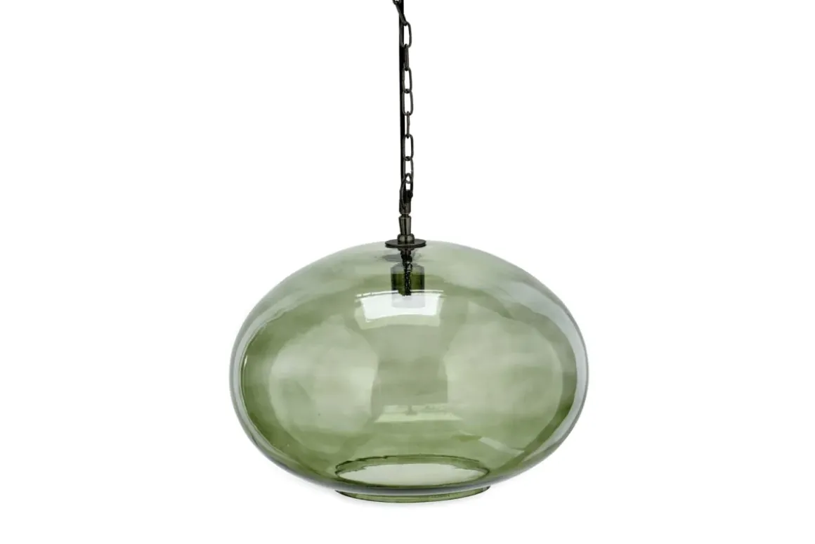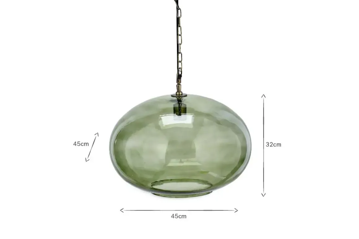 Create a focal point with this striking large round pendant light, beautifully crafted from recycled glass in a sophisticated green smoke hue that gently diffuses the light. The size of the light makes it the perfect feature light. Style as a central light in living room or hallway, or position in a stairwell or entrance porch.