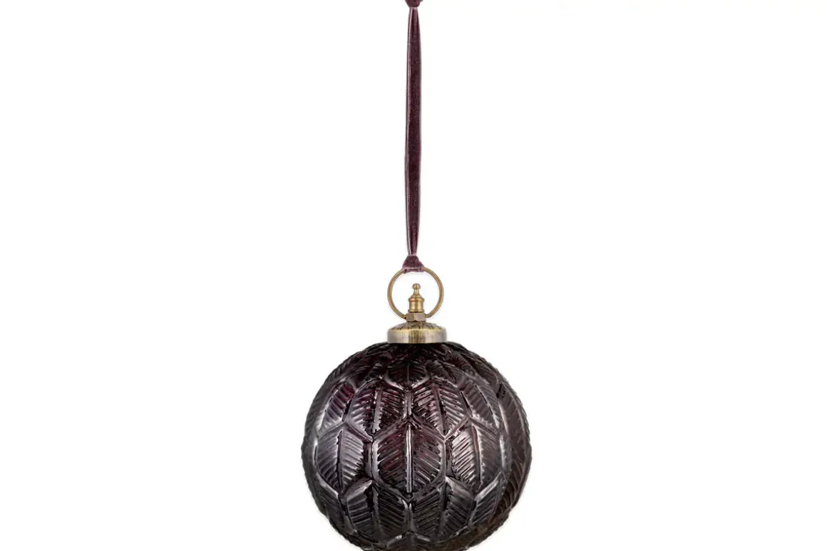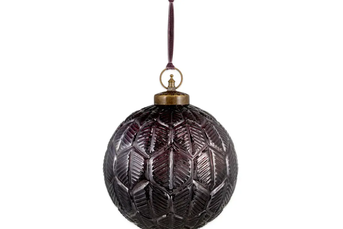Our oversized recycled Patta Bauble is loved for its generous proportions and beautiful pattern. It makes the perfect statement decoration, as well as adding a touch of stand-out glamour to your tree, it’s also beautifully stylish when placed along a mantelpiece or gathered with other decorations to add a little festive magic to your living space. Finished with an antique-style clasp and elegant velvet ribbon. Available in two sizes.