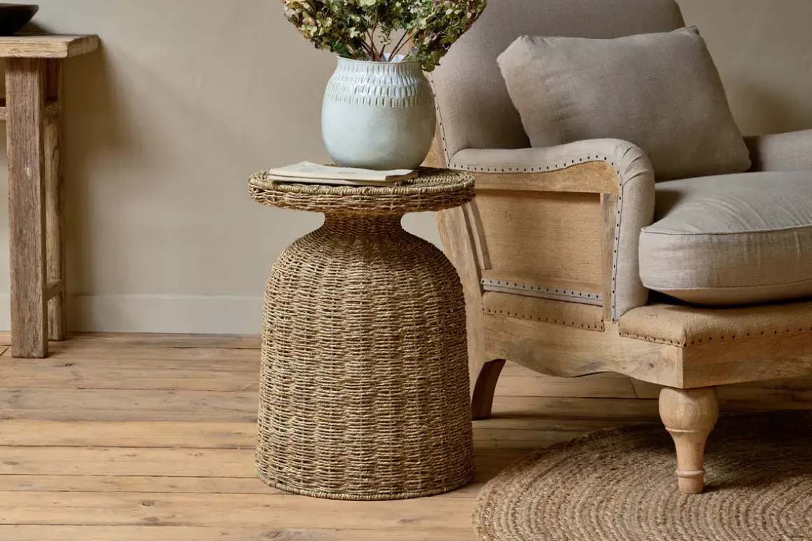 The Rampura Side Table has an elegant sculptural shape that makes it an eye-catching addition to a living space. Handwoven from rattan around a sturdy iron frame, the artistry is in the skilful way the rattan has been tightly woven to completely hide the metal from view.