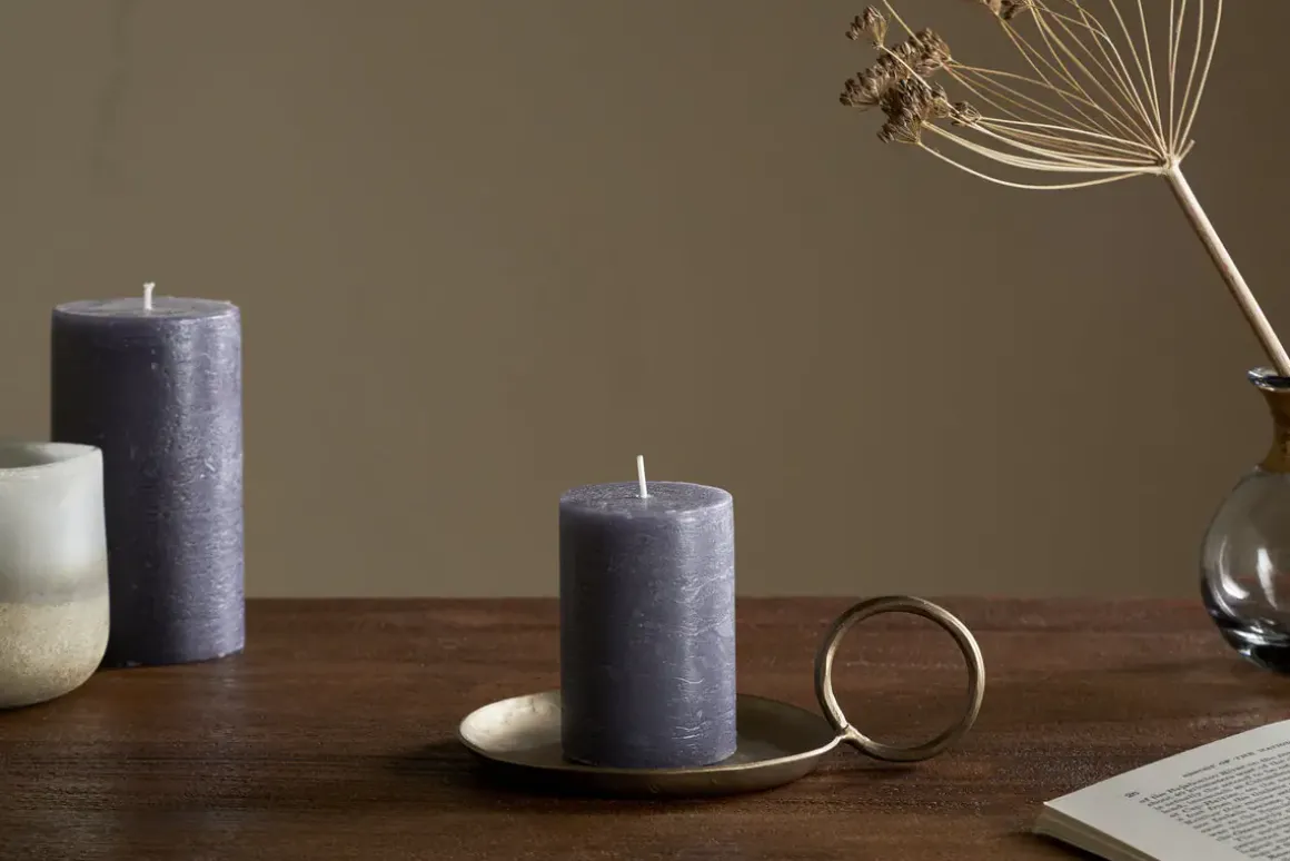 This mini rustic pillar candle features a softly textured finish and a cool charcoal tone that brings a relaxed feel to any setting. Its smaller size makes it perfect for layering in groups or styling with more compact holders. Whether on a side table, windowsill or as part of a seasonal display, it adds a gentle, inviting glow to your space.