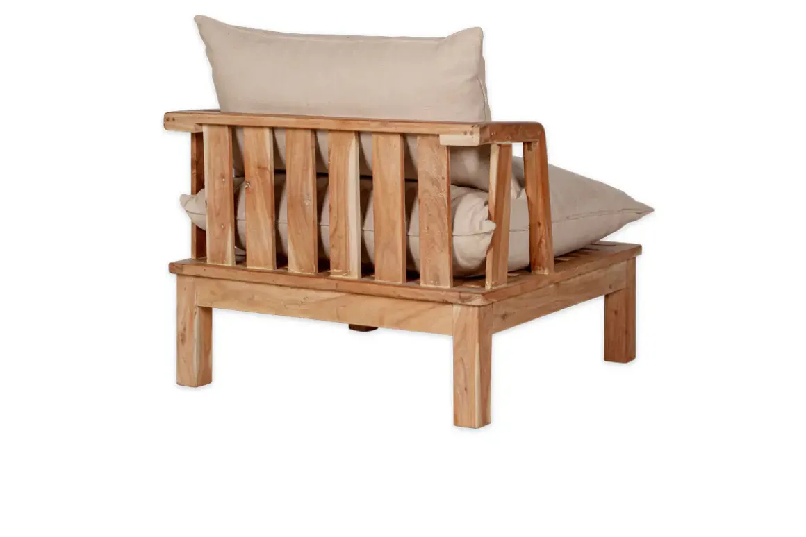 Cotton Cushions – 58% cotton 42% Jute. Our outdoor cushions are made from a jute and cotton water repellent fabric. The cushions are not completely weatherproof so don’t leave them out in showers or heavy rain fall. To prolong the life of the cushion we recommend not leaving them outdoors overnight or in inclement weather. Spot Clean only. Furniture Features of acacia wood. This item is made of acacia wood. It is important to understand the unique properties and characteristics of acacia wood. Wood Shading and Grain Variation in colour, shading and grain between different parts of the same product can occur, this is a normal feature of natural wood. Knots are a natural property of wood; they add interest to each piece and do not affect performance. Cracks Acacia wood can develop cracks along the grain after they have been exposed to the elements, this is a natural property and not a flaw. Cleaning & storage A yearly clean with warm water removes algae and pollution to restore the timber surface. Do not use any abrasive or corrosive cleaning products. Although acacia wood used for outdoor furniture is high in oil content making it weather resistant, we do advise storing in a dry place over the winter months to prolong the life of your furniture. Care The Anbarasi collection is treated with an outdoor sealant , however will develop an aged-grey patina over time. To prolong the life of your furniture a natural water-resistant oil or wax should be used each season. If your furniture becomes stained, scratched, chipped, or suffers other damage, we recommend professional help sought to restore it.