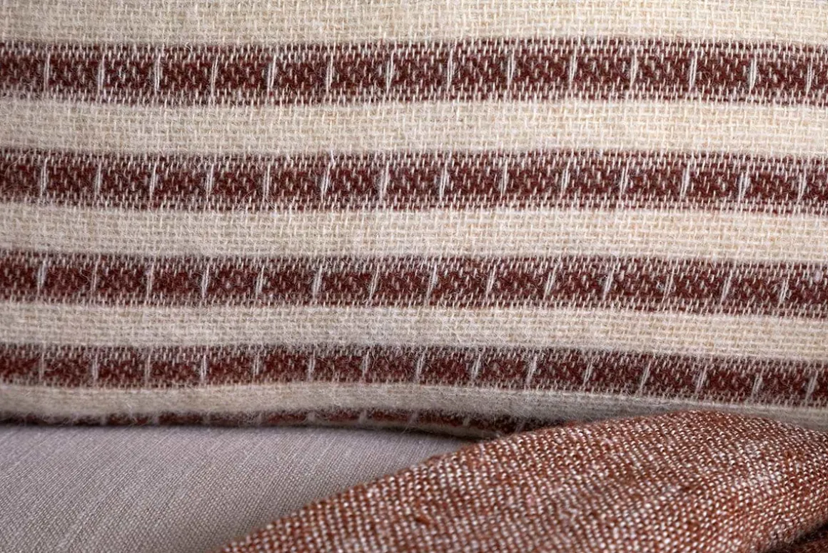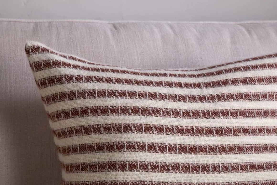 Beautifully tactile, our striped Sanval cushion cover is irresistibly soft to the touch, adding comfort and cosy style to any seating area. Crafted from 100% wool in Portugal, this simple, thickly striped design in deep burgundy brings an eye-catching new look and sits perfectly among a neutral or muted palette, perfect for refreshing a sofa or accent chair. Available in two sizes and a rich rust colour. Pair with the Sanval throw for the perfect cosy night in. Our feather cushion inners will accompany your cushion cover perfectly. Please note, the size of the cushion inner will display slightly larger than our cushion covers to allow for a plump finish when put together.