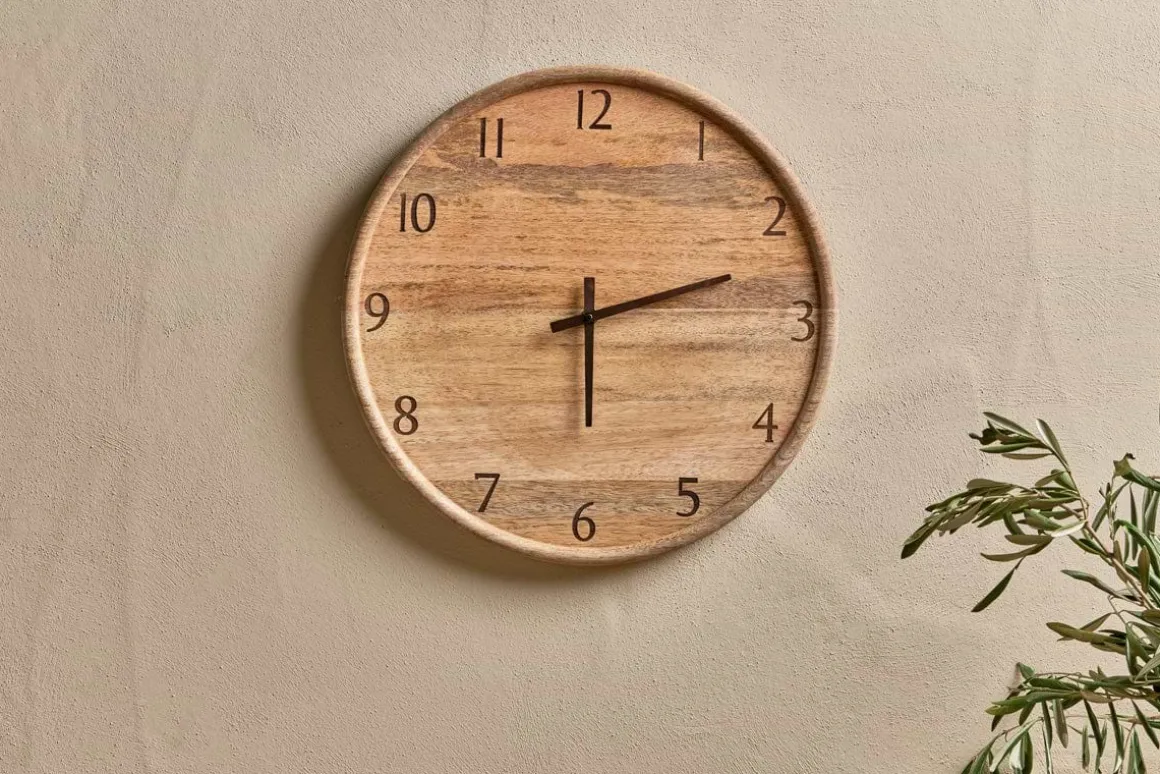 Blending traditional craftsmanship with contemporary style, our Som mango wood clock is meticulously hand-carved, featuring numbers and aged rust hands set against a gently curved edge. The design captures the essence of classic farmhouse aesthetics while remaining both elegant and functional.