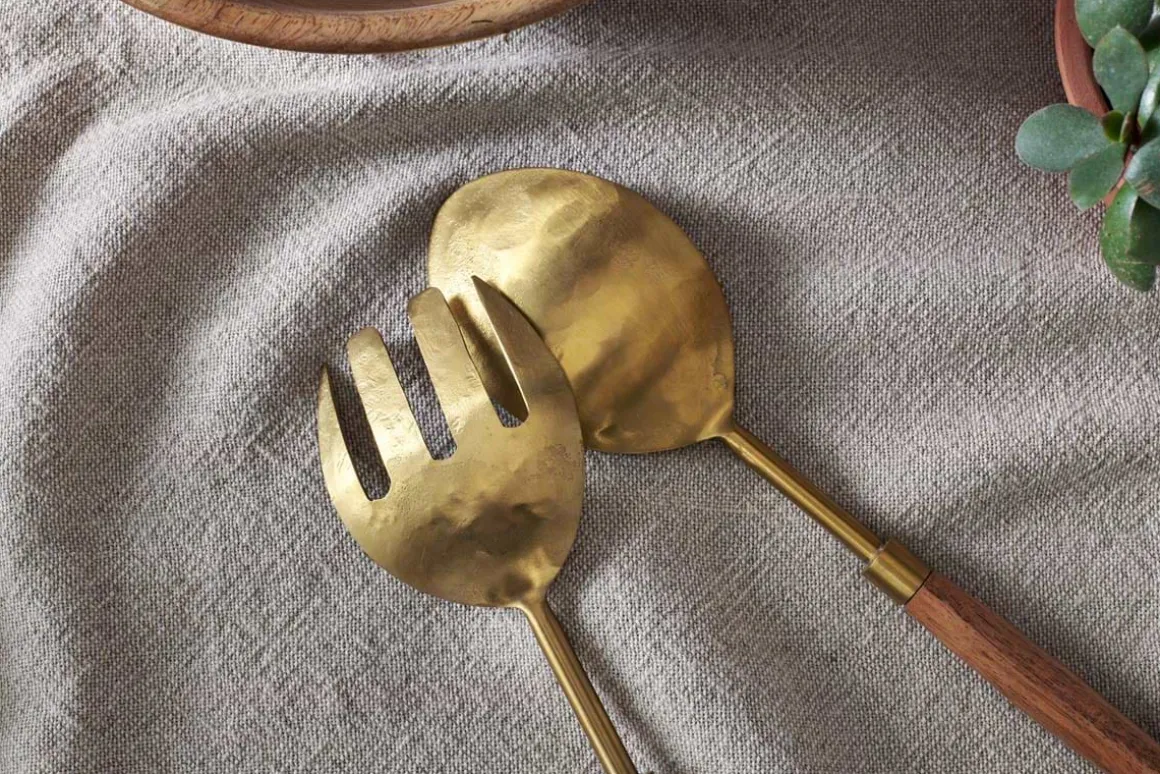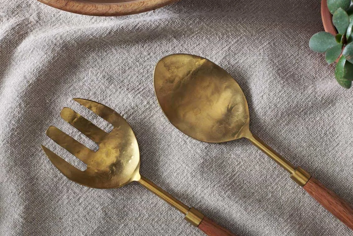 Soni Salad Servers – Gold & Acacia (Set of 2)