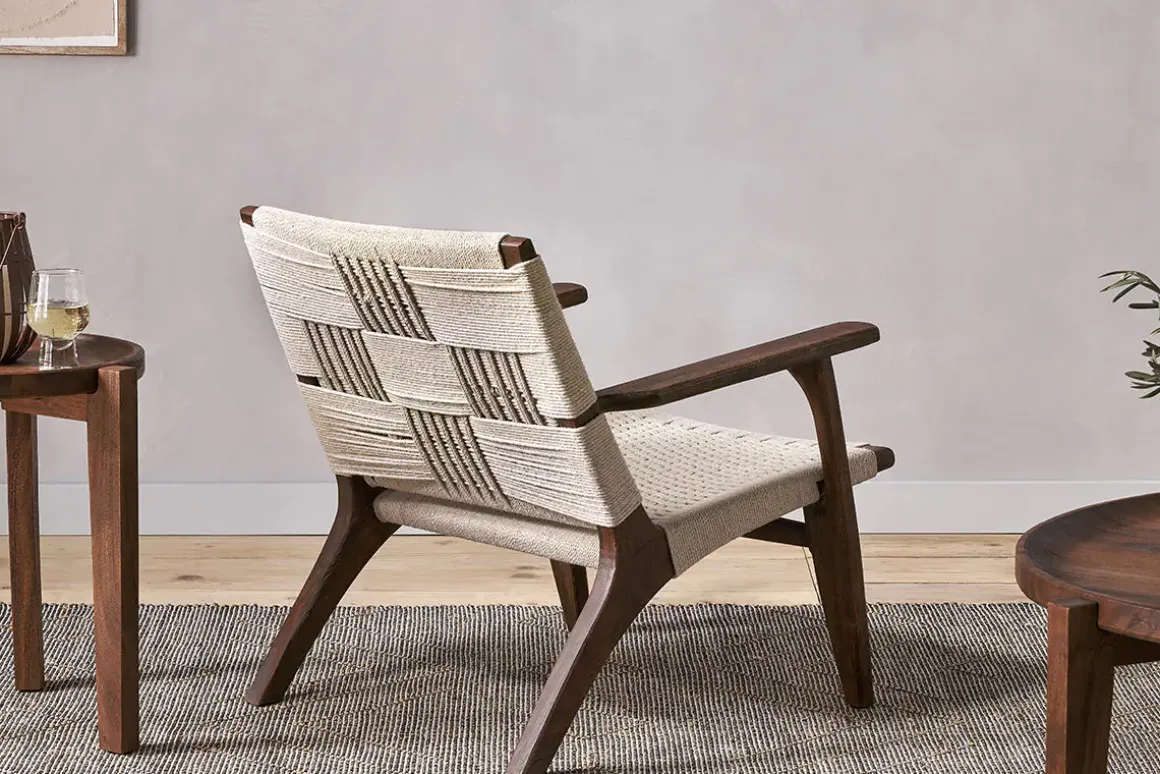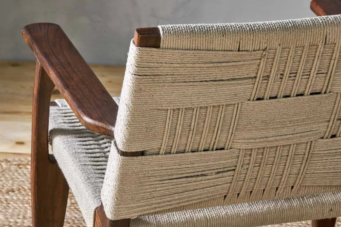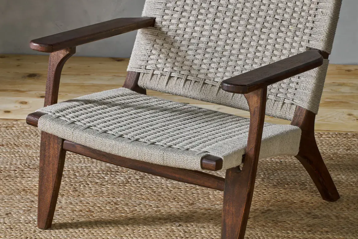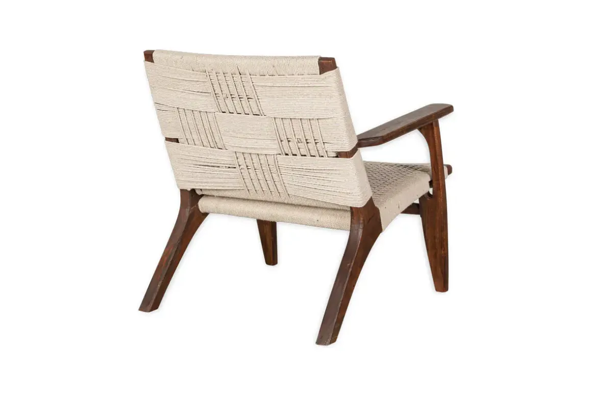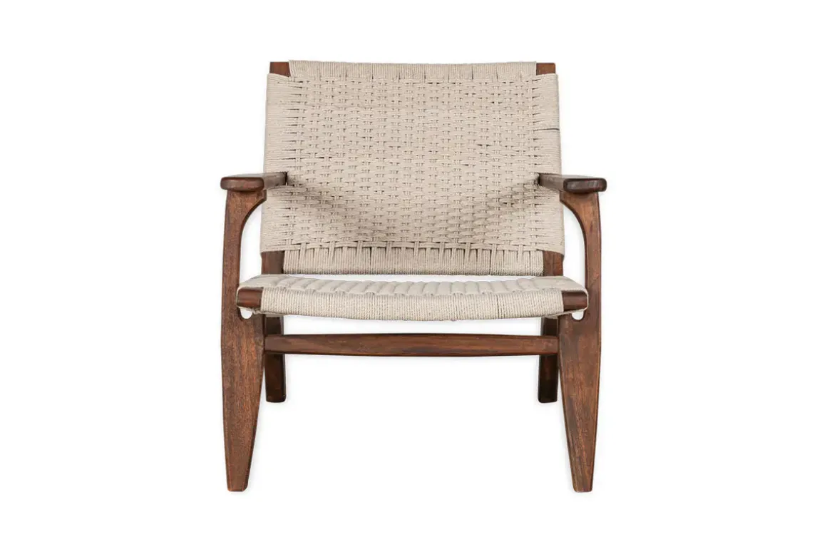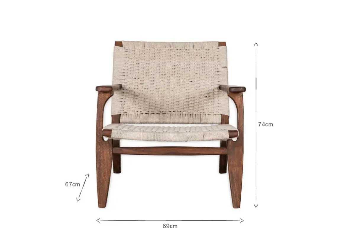 This simple lounger is made from acacia wood which we love for its warm natural tones and beautiful grain. The simple, timeless design is generously sized for maximum comfort and the seat and back support is made from hand-woven cotton rope in a natural tone that effortlessly complements its wooden structure.